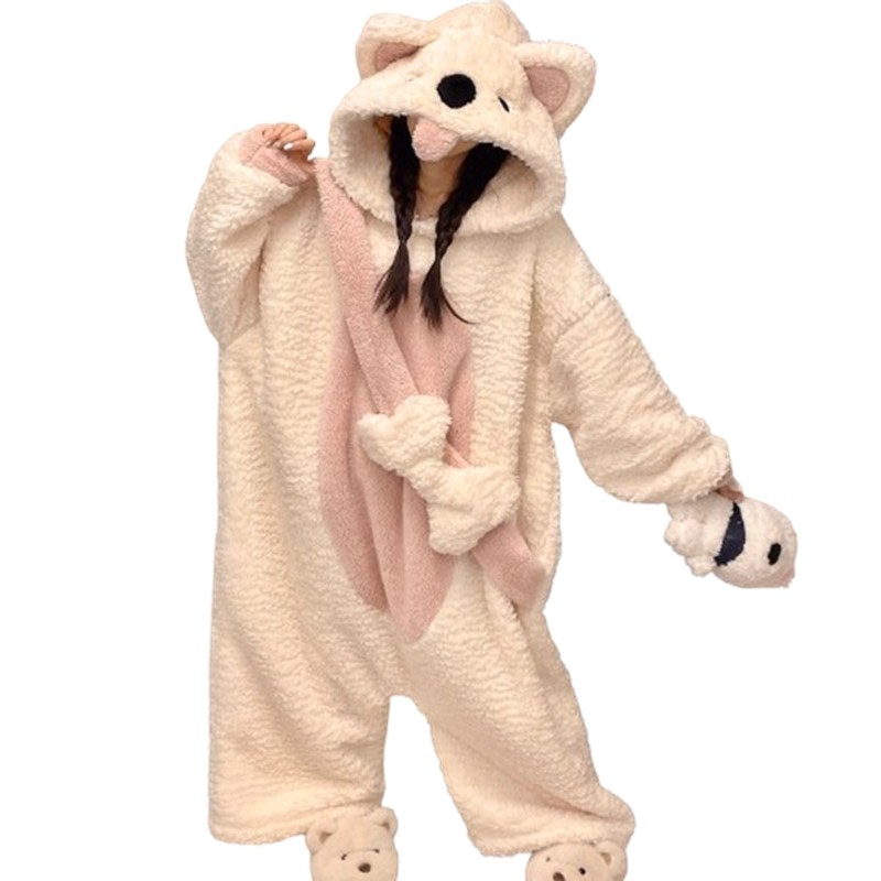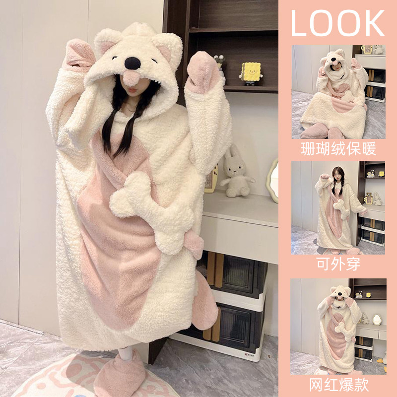 珊瑚绒睡衣女款2025新款秋冬季男士加厚可爱狗睡袍睡裙连体家居服