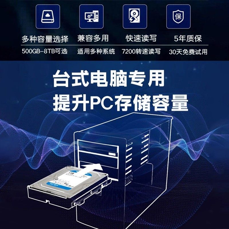 WD 西数高速机械硬盘500GB/1TB/2T/3T4T6T8t台式电脑监控游戏黑盘
