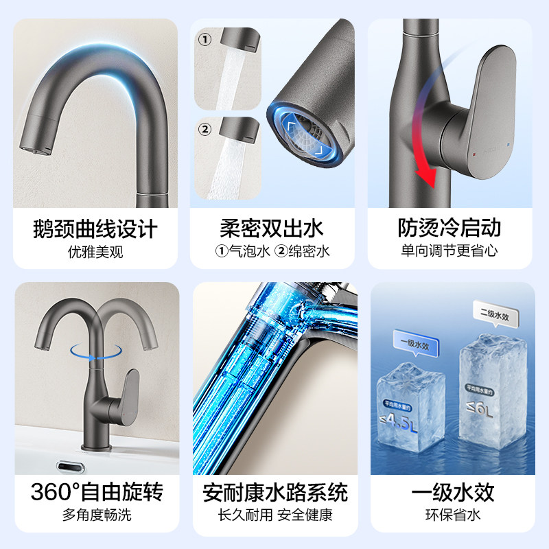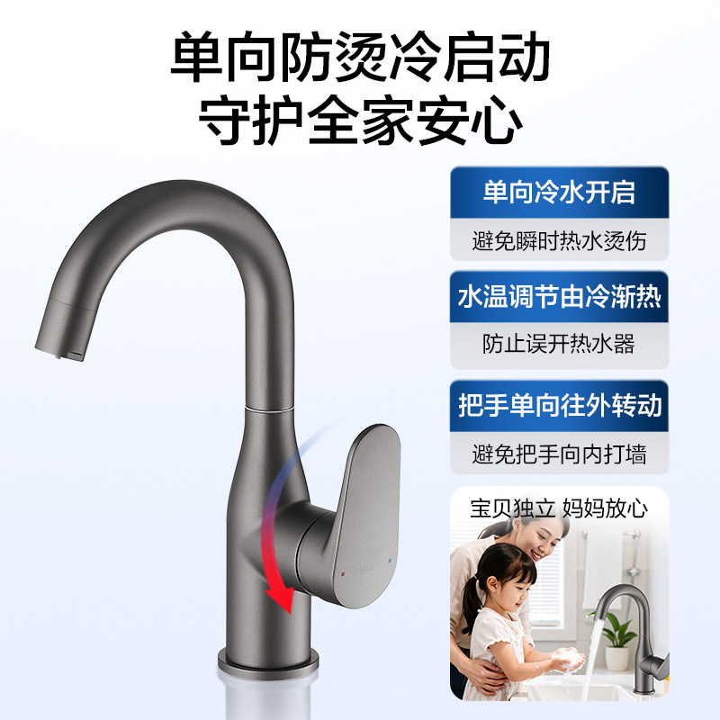 恒洁洗漱台水龙头冷热双控面盆卫生间卫浴台上盆弯管旋转龙头938