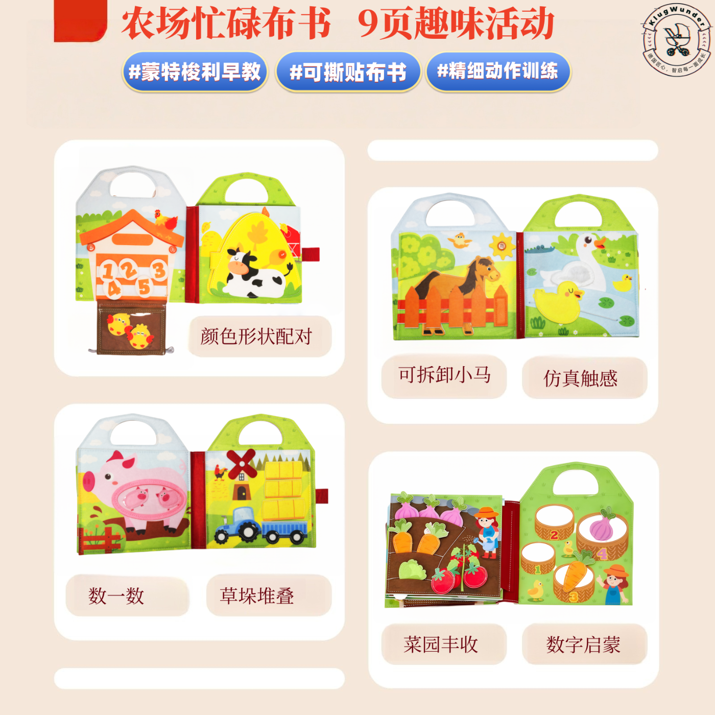 宝宝儿童撕不烂新款农场立体早教启蒙布书毛毡书忙碌书婴儿土豪书