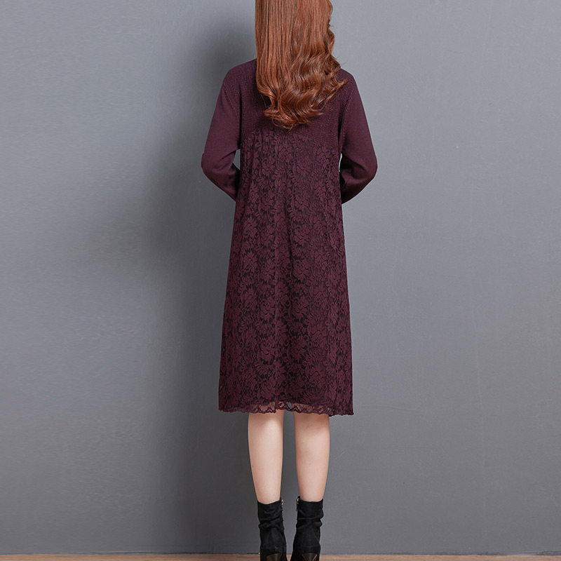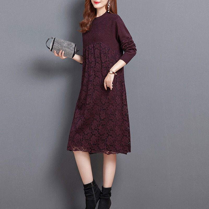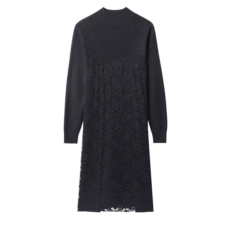 恒源祥2025新品长袖春装时尚V领蕾丝裙简约修身收腰优雅A字连衣裙