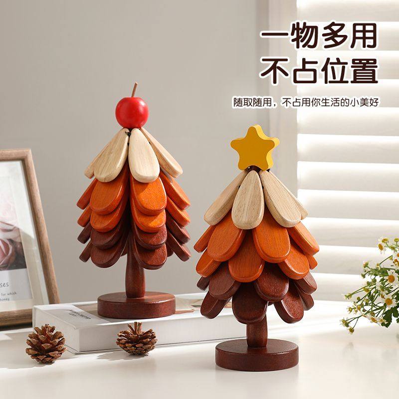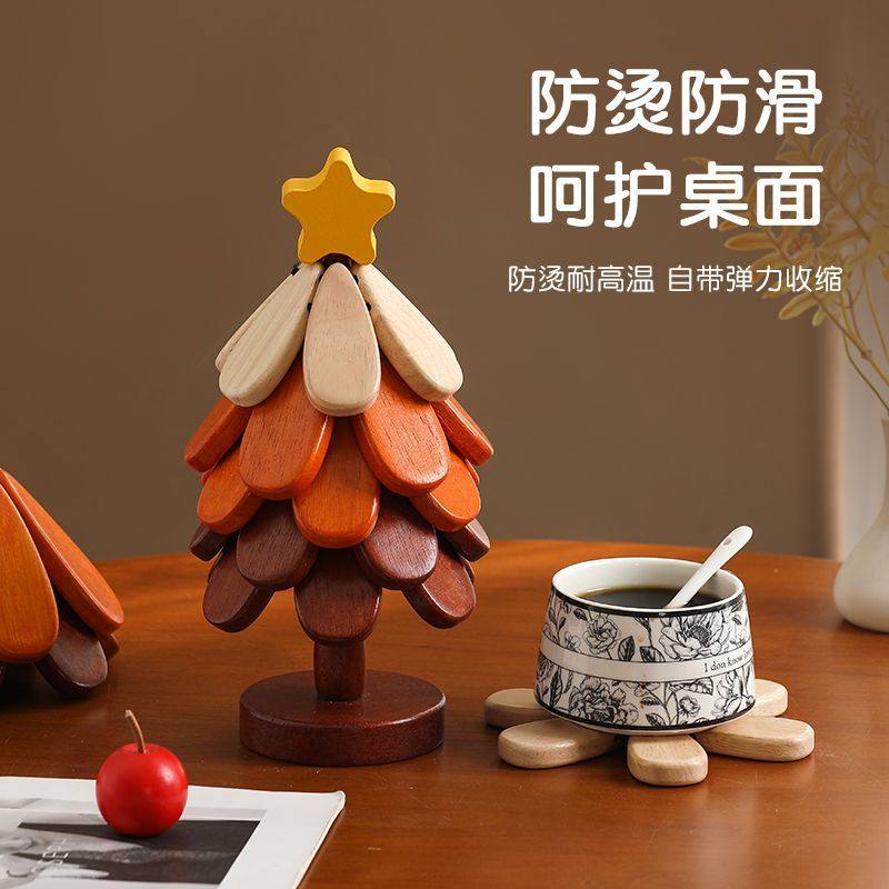 圣诞树隔热垫创意餐垫桌杯垫实木防烫耐高温锅垫餐边柜摆件装饰品