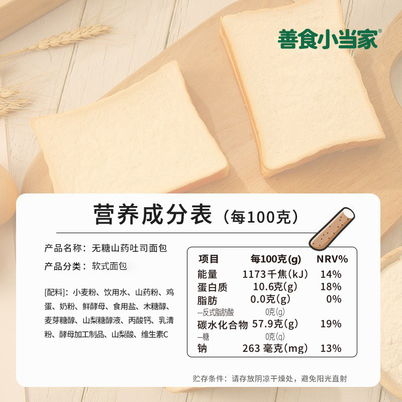 无糖山药面包零食品营养早餐吐司调理0脂无添加全麦早餐杂粮面包