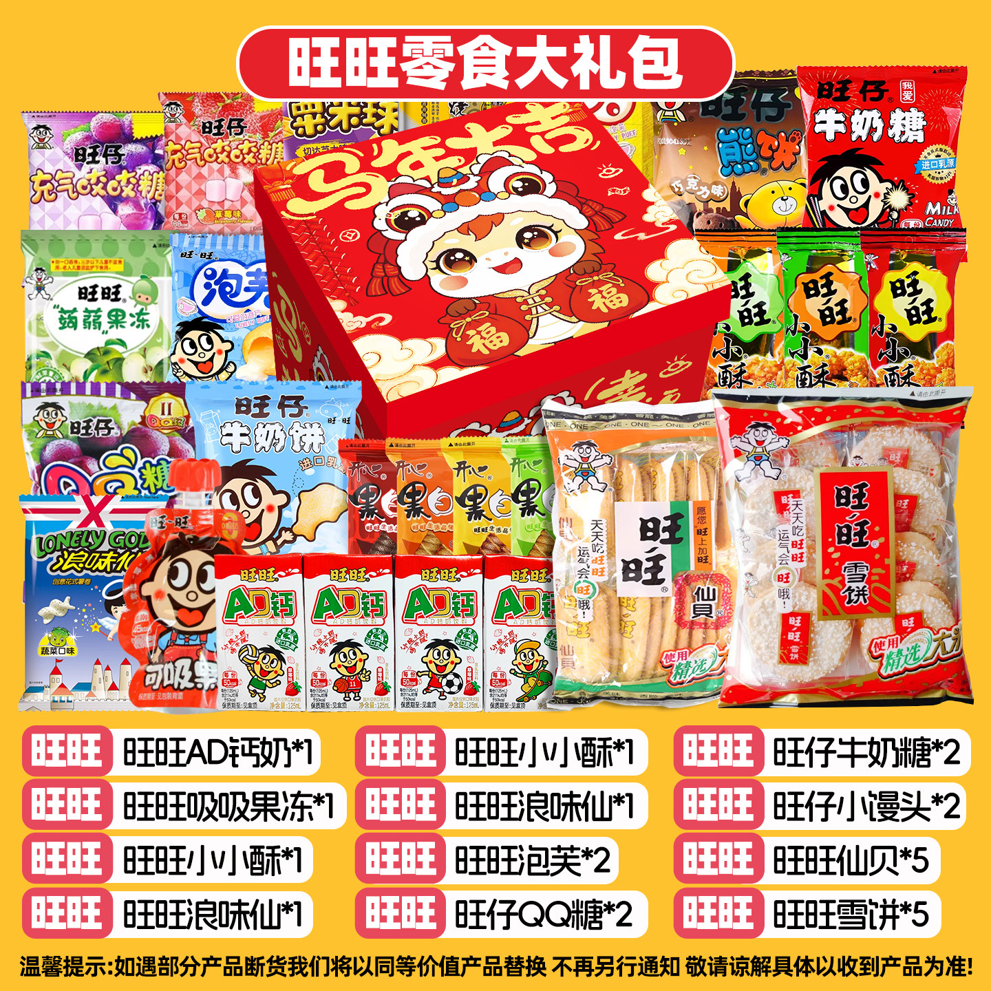 旺旺儿童零食大礼包春节过年礼物春游解馋零食过年送礼伴手礼