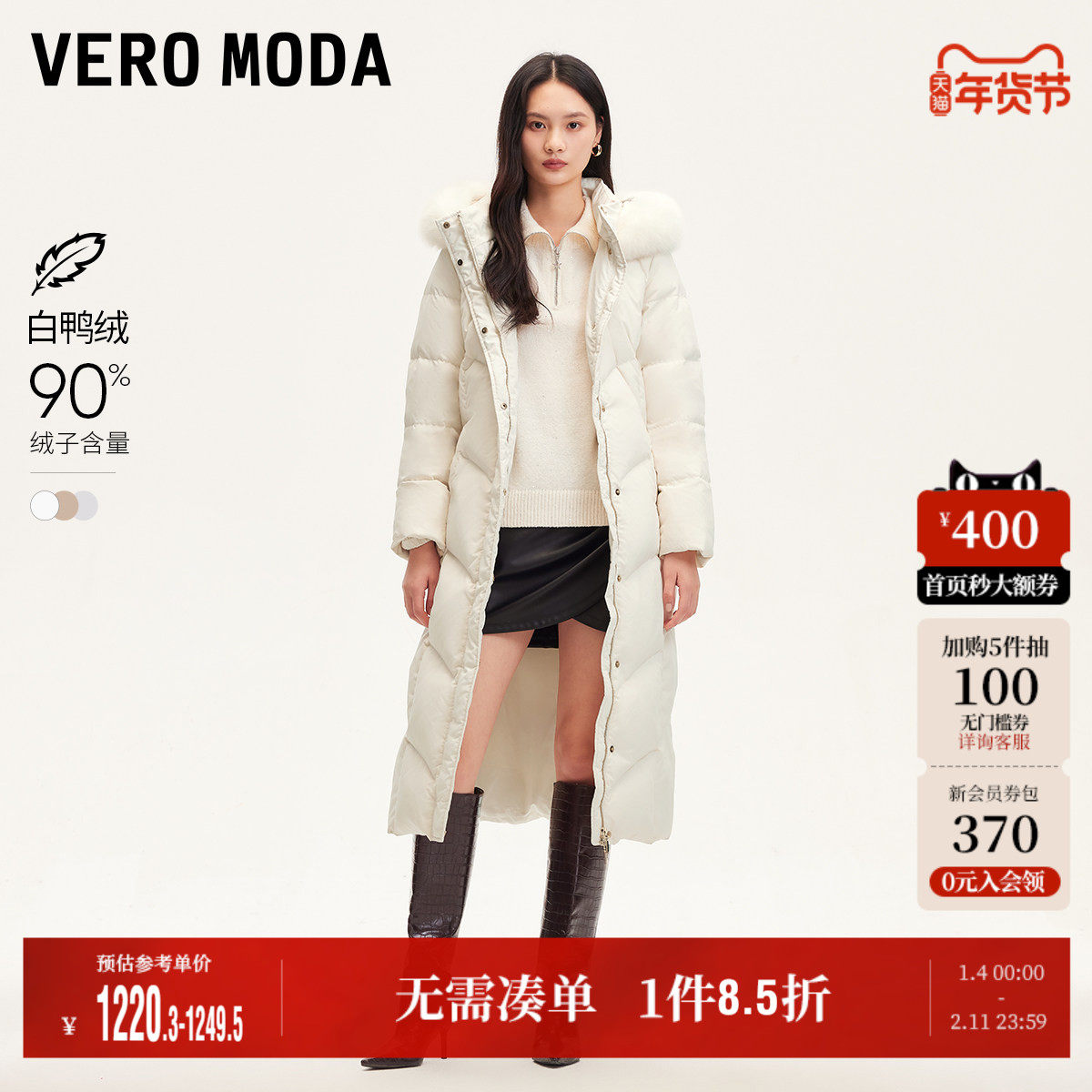 Vero Moda奥莱羽绒服女秋冬新款狐狸毛领亮闪90白鸭绒收腰长款