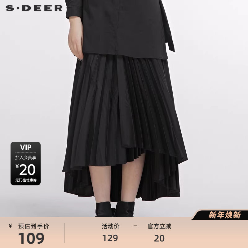 sdeer圣迪奥鱼尾裙女装时尚前端后长百褶裙半身长裙子S20181105
