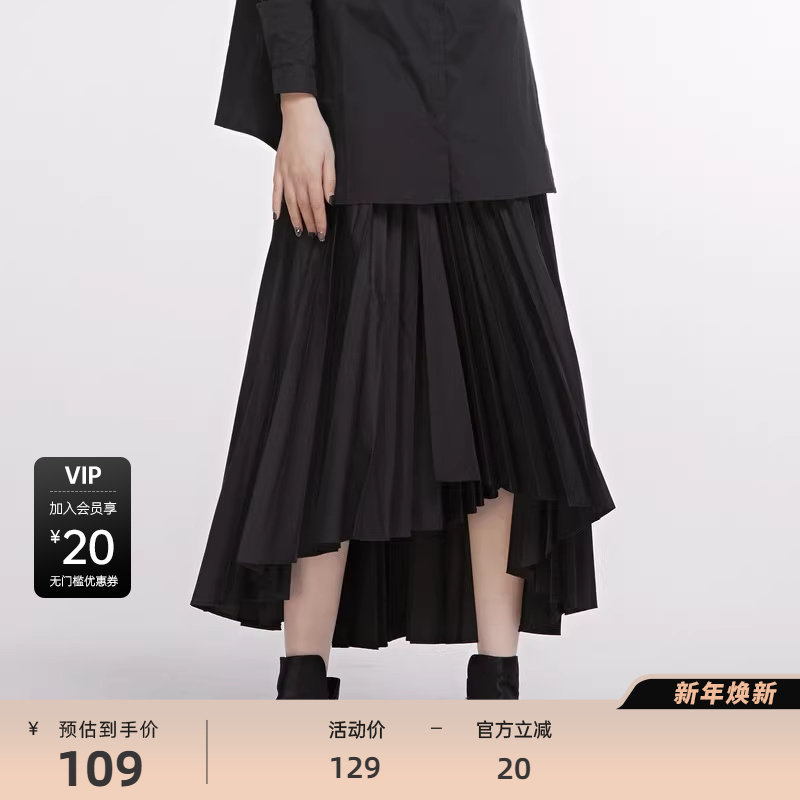 RAPPEYE 设计感褶皱折叠伞裙显瘦高腰不规则A字裙小个子半身裙女