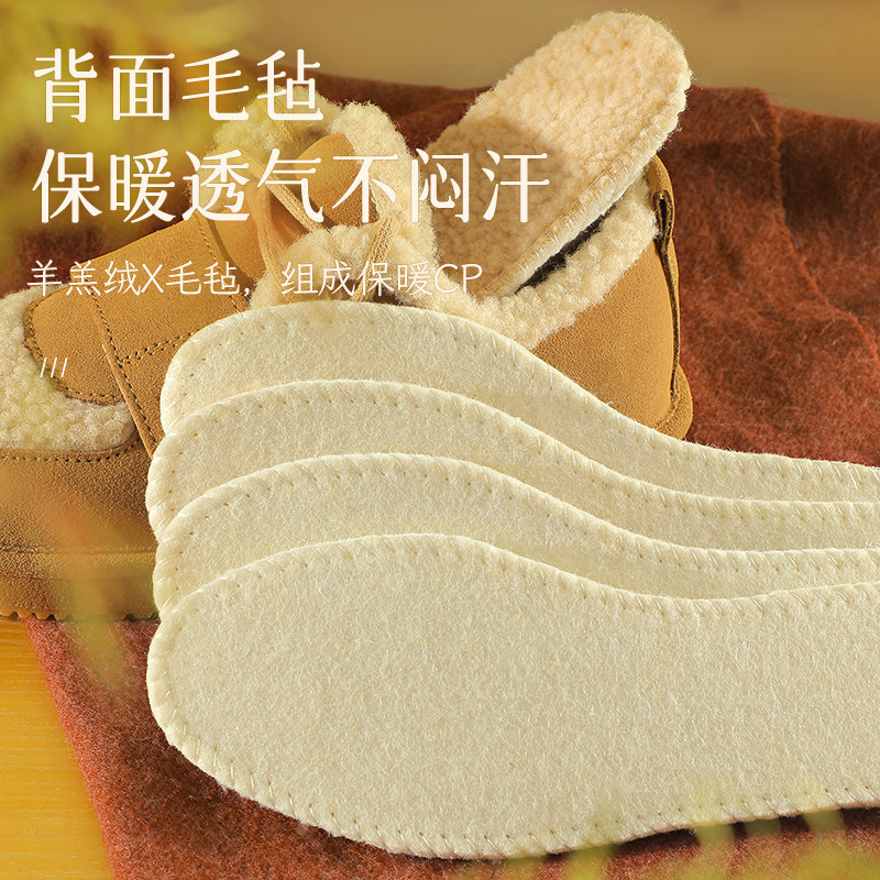 羊毛鞋垫冬季棉鞋垫透气吸汗防臭皮毛仿澳洲羊毛加绒加厚保暖鞋垫