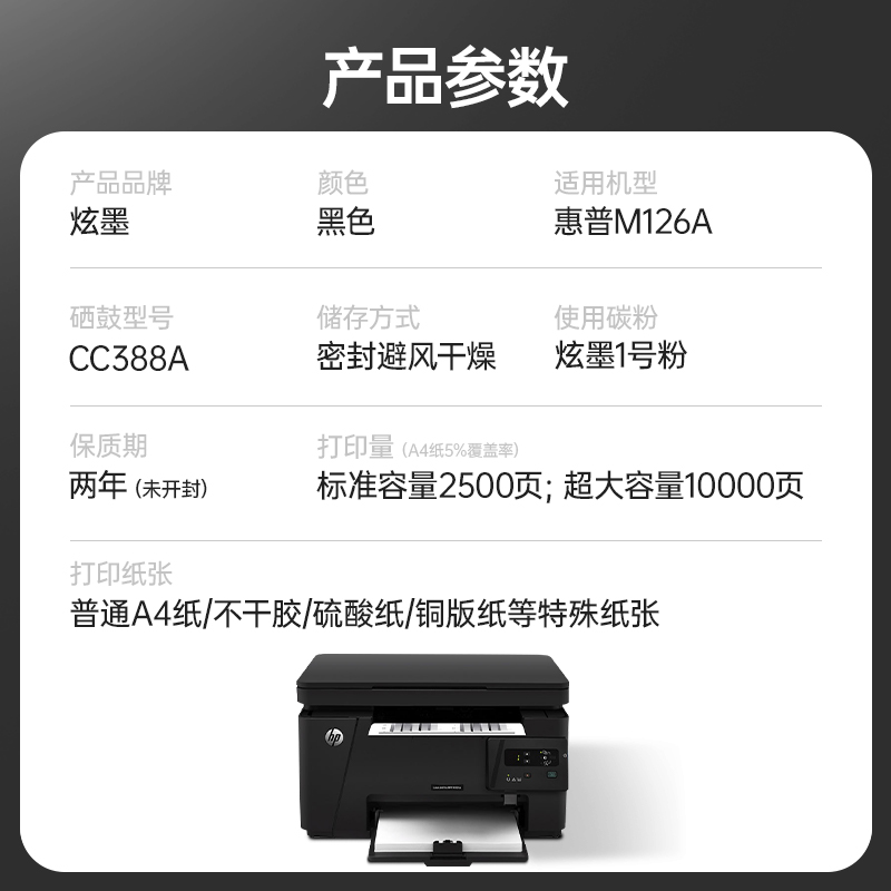 【原装品质】炫墨适用惠普m126a硒鼓墨粉 laserjet Pro mfp m126nw打印机硒鼓墨盒碳粉盒hp126粉盒晒鼓黑白
