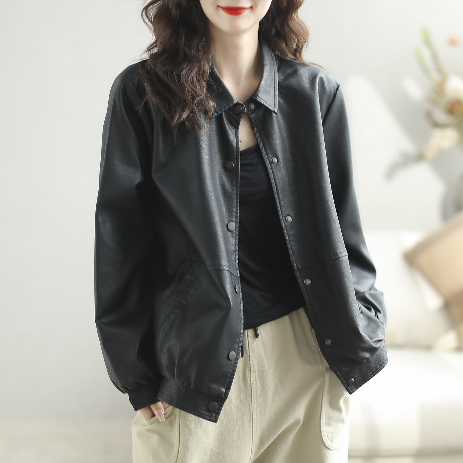 黑色皮衣外套女2025春秋港风复古宽松短款小个子大码机车pu皮夹克