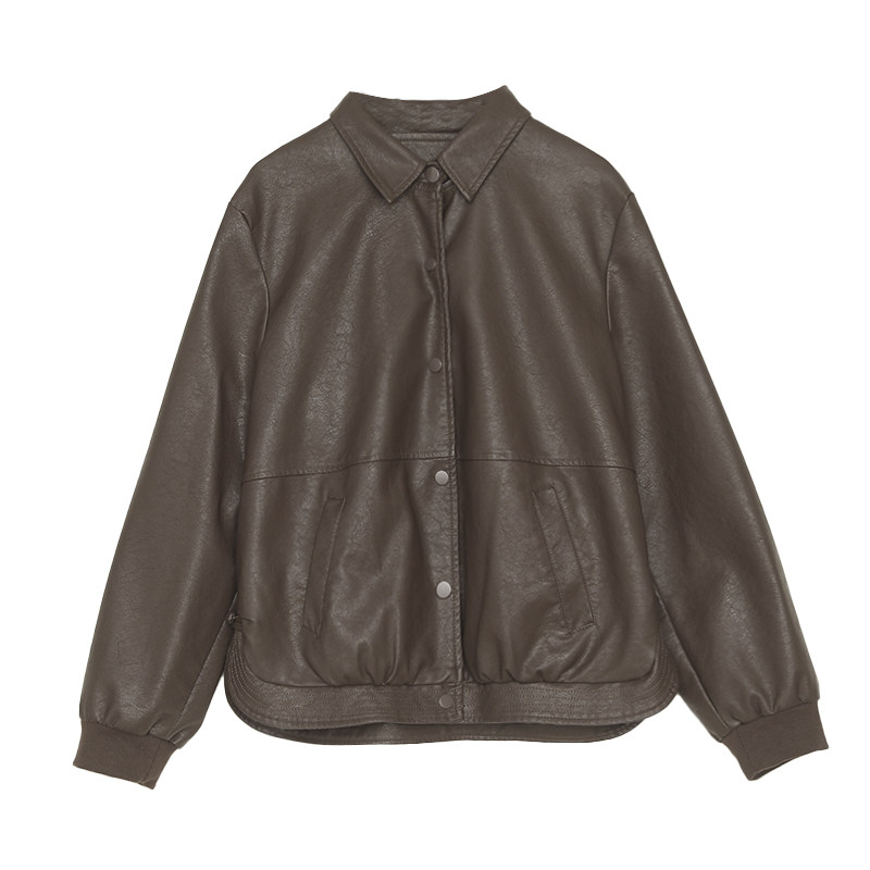 Eland衣恋皮衣女纯色带拉链长袖翻领外套2025冬季新款