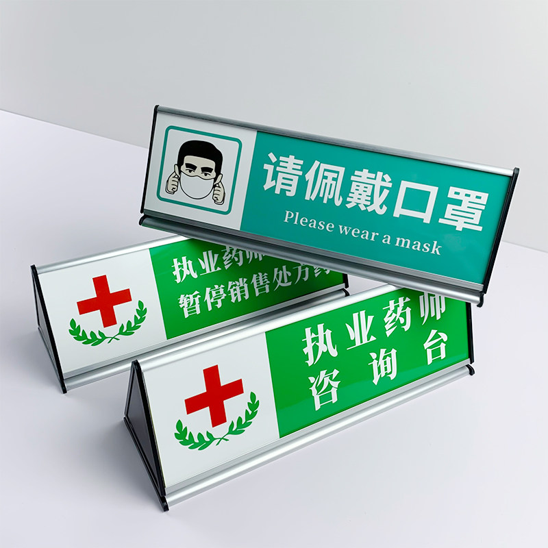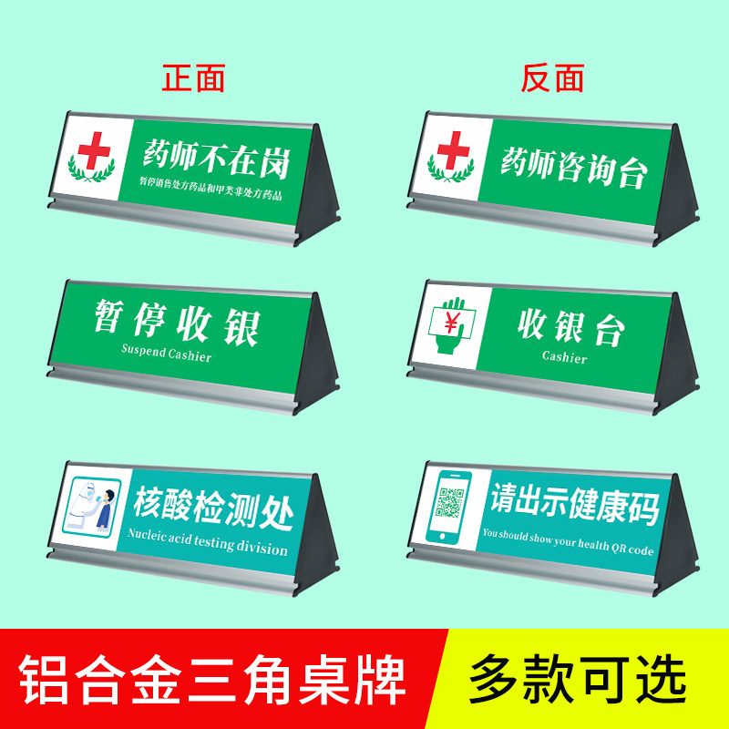 药房药店三角桌牌药师咨询台执业药师不在岗预检分诊台咨询服务台提示标识牌提示牌桌牌立牌铝合金三角牌定制