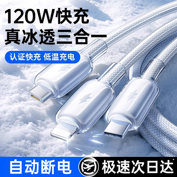 120W快充 三口同充不分流 冰透双层编织