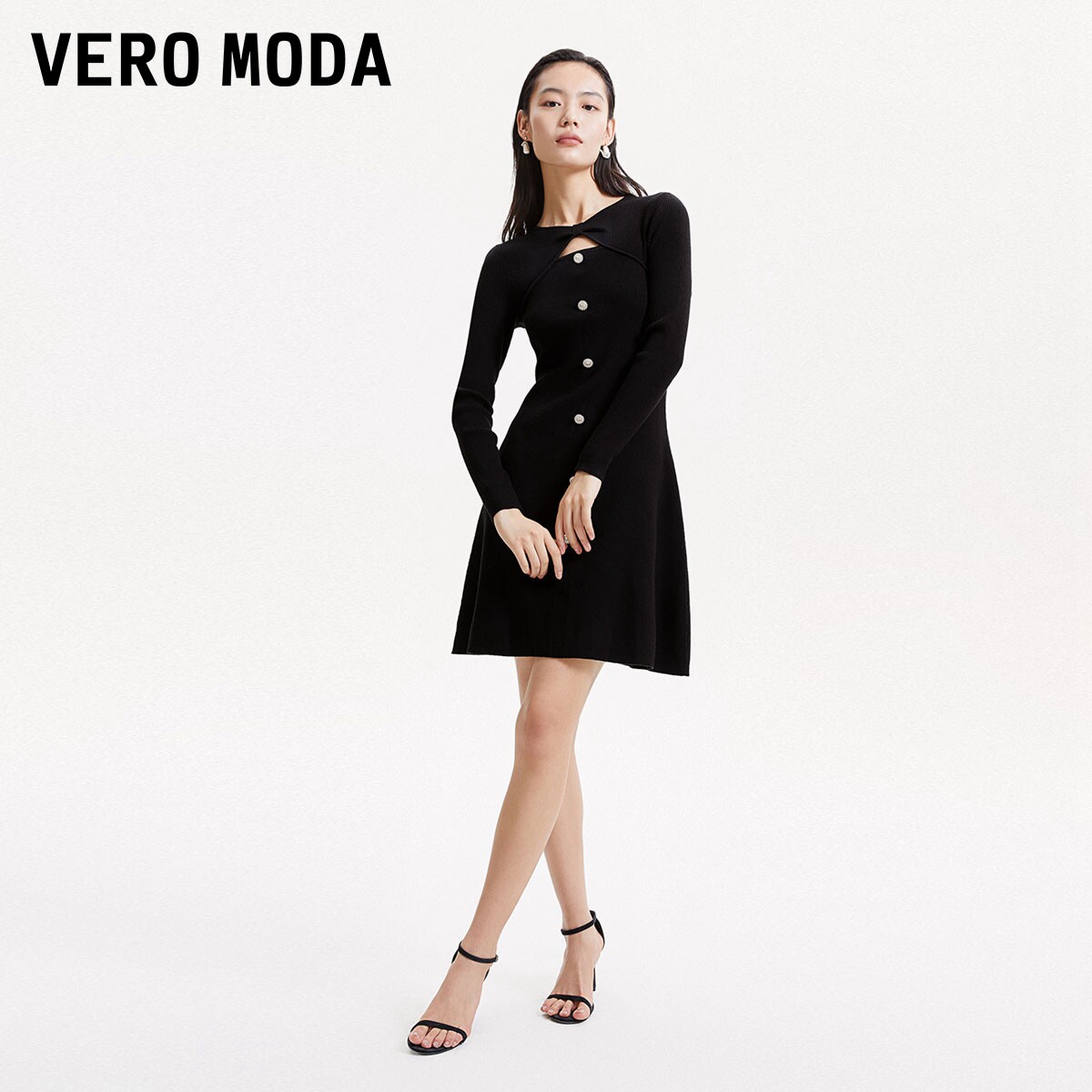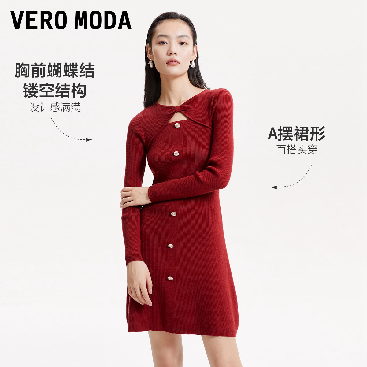 tq区绫致Vero Moda针织连衣裙秋冬优雅甜美时尚纯色百搭
