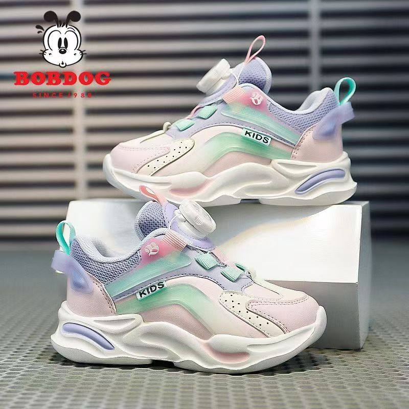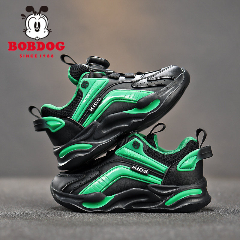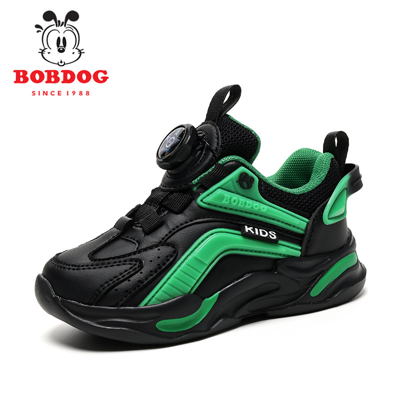 巴布豆男童鞋子2025春秋新款防水皮面旋转软底女童运动鞋减震跑步