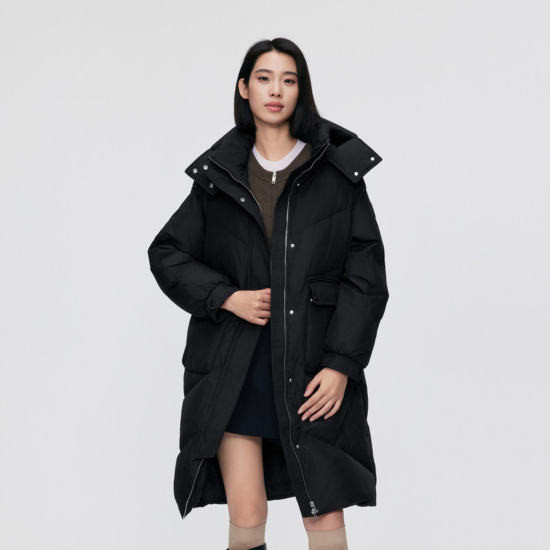 波司登奥莱冬季长款气质多色保暖廓形连帽羽绒服外套休闲情侣款
