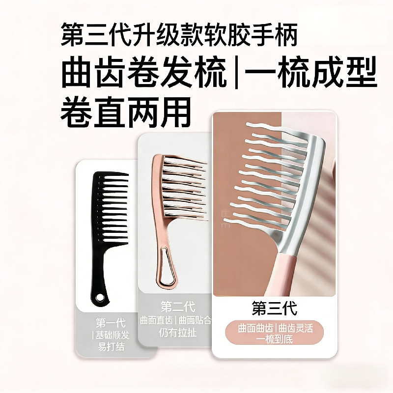 大排骨梳子卷发梳背头蓬松造型神器气囊梳子长发卷发按摩大弯梳子