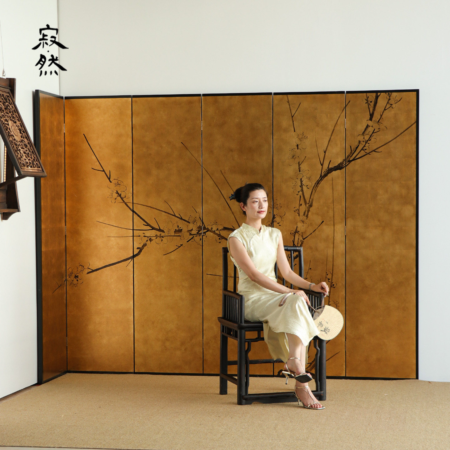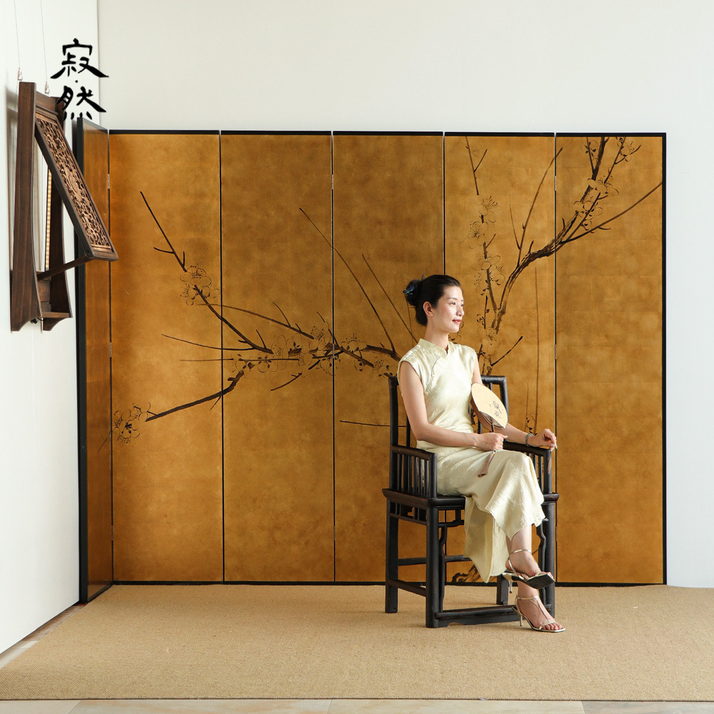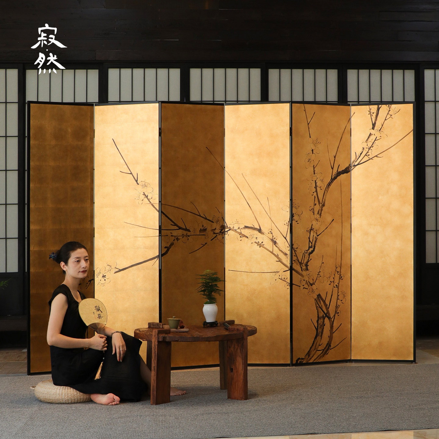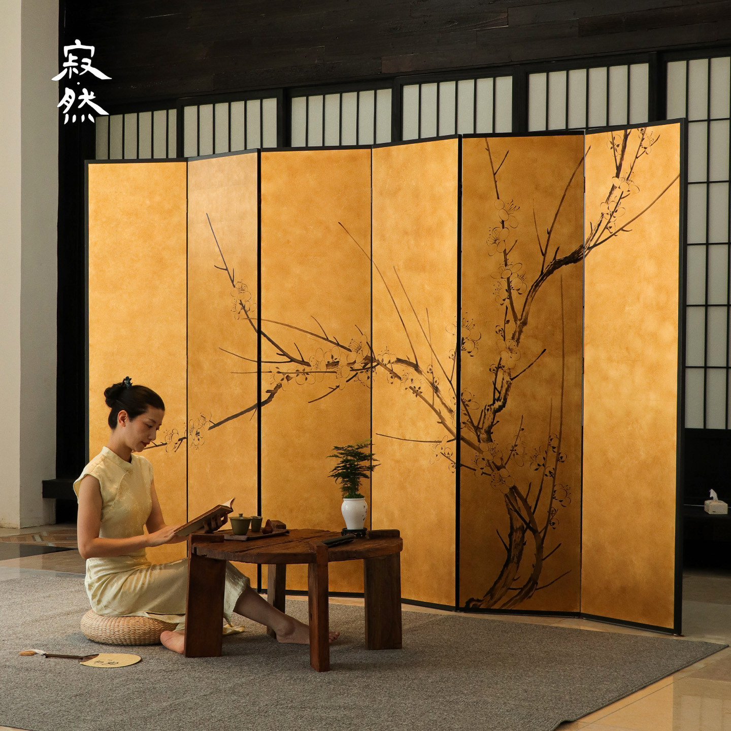 寂然宋代美学金箔屏风隔断客厅入户玄关装饰茶室中式梅花屏风手绘
