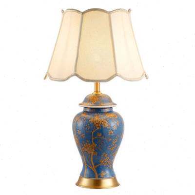 极速美式乡村卧室床头柜全铜陶瓷台灯欧式客厅大气奢华沙发角几台