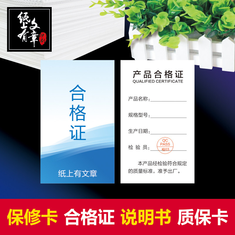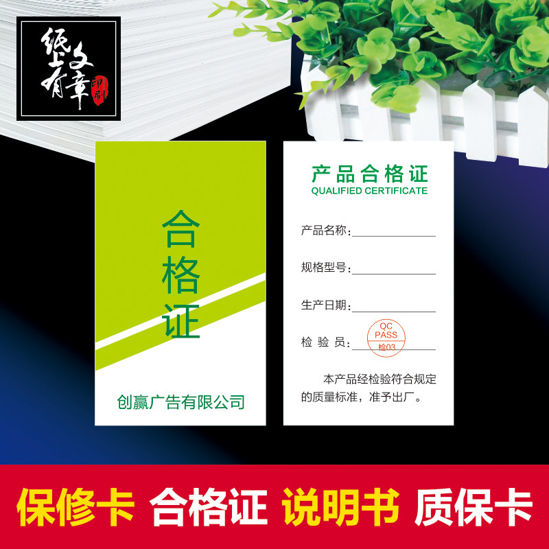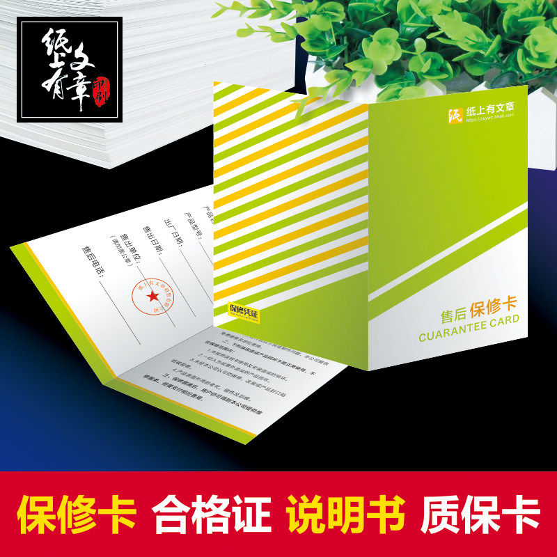 产品售后保修卡定制质保卡检验合格证吊牌说明书售后保障卡汽车膜装修公司全屋定制产品质量三包售后卡订做