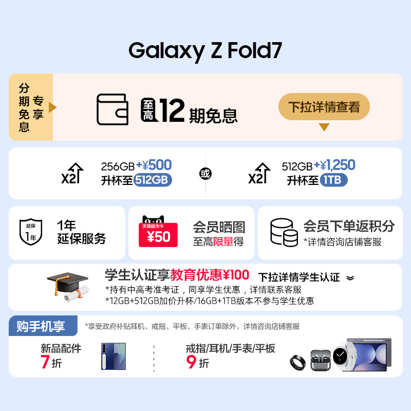 【256GB升杯512GB】Samsung/三星 Galaxy Z Fold7超轻薄折叠屏旗舰AI手机 2亿像素 骁龙8至尊版