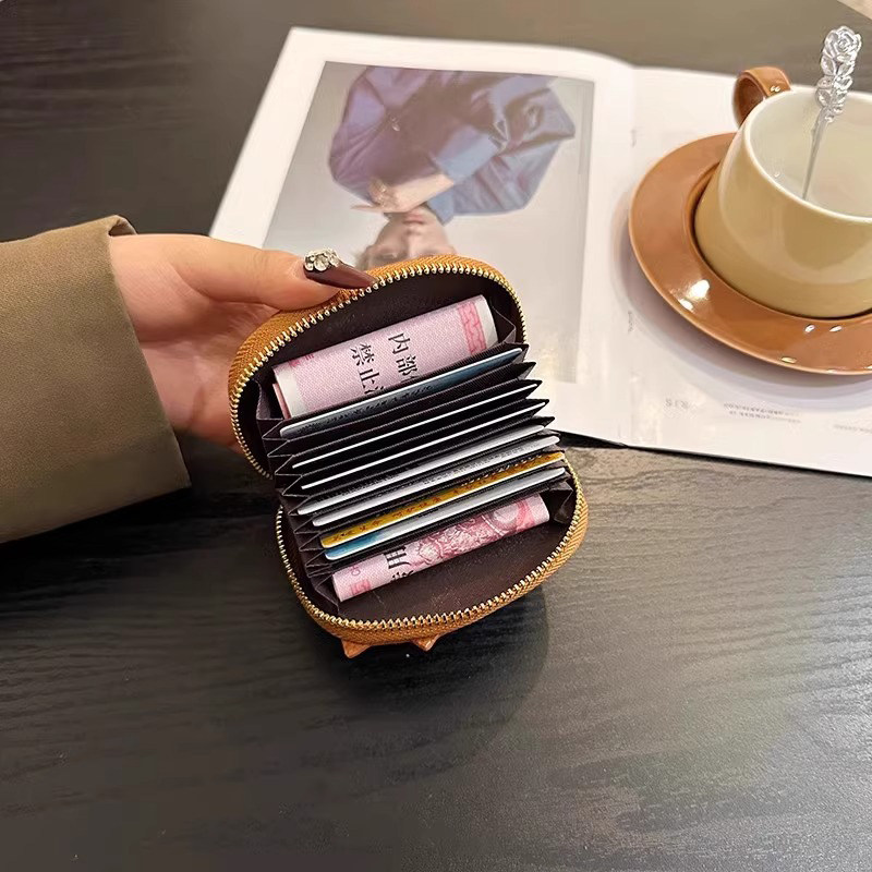 稻草人卡包女士新款证件女式牛皮小巧真皮拉链钱夹小众银行卡钱包