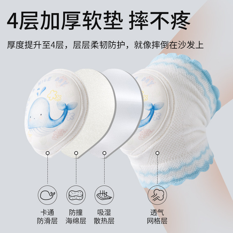 婧麒婴儿护膝夏季男女宝宝防摔爬行加厚保护棉垫透气薄款防滑护具