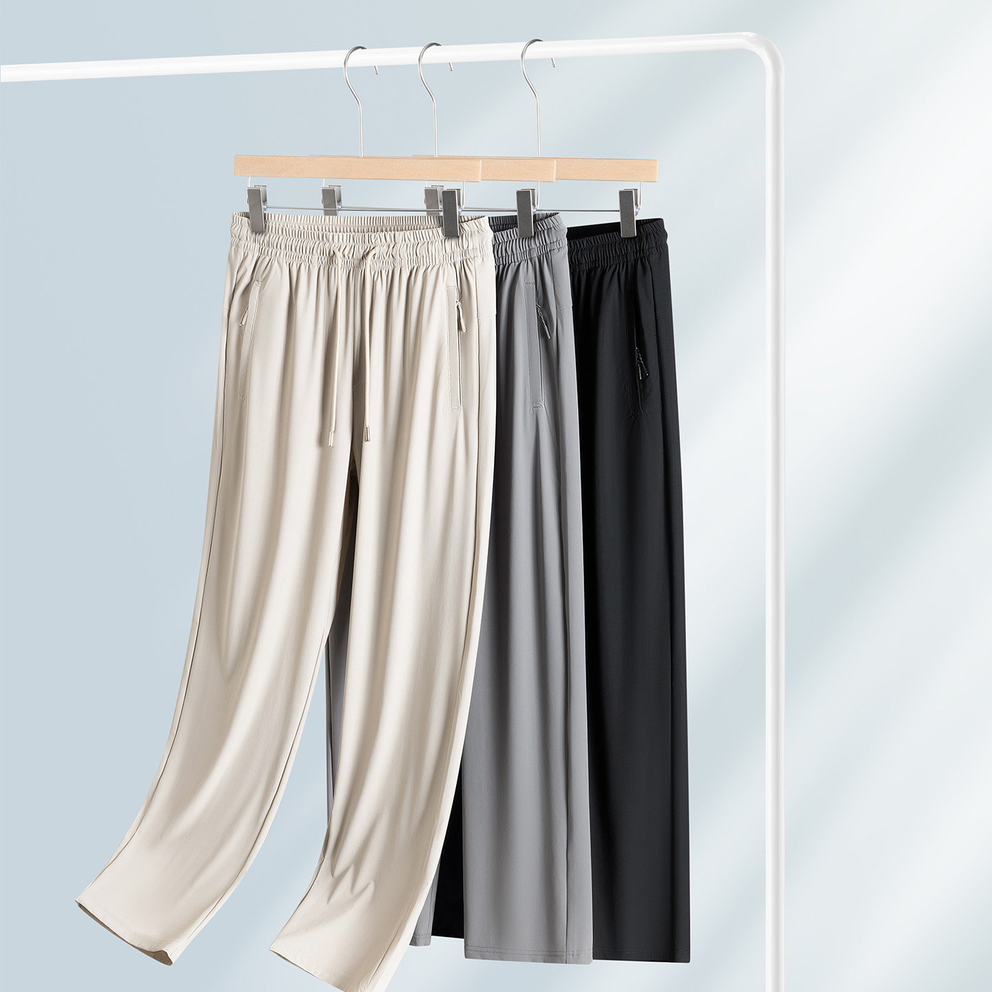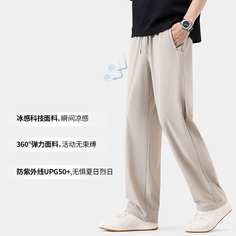 雪中飞冰丝休闲裤男士高弹松紧腰直筒男裤夏季薄款防晒凉感裤子男