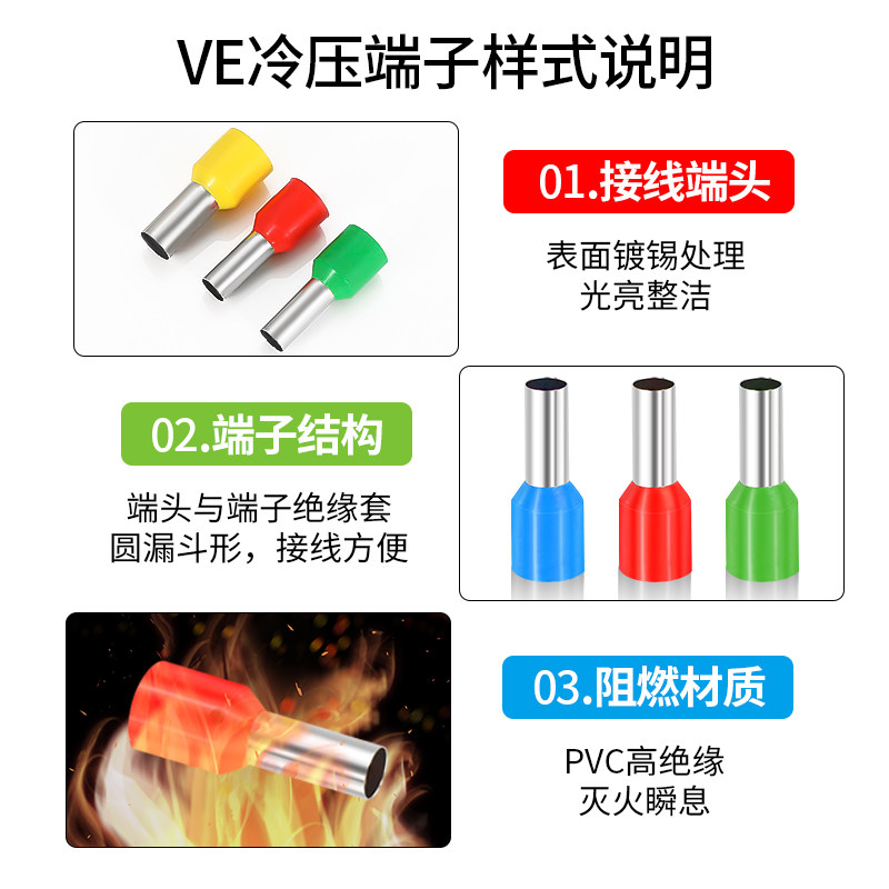 VE管型接线端子冷压管形接头针式压线铜耳插针电线针针型线端子