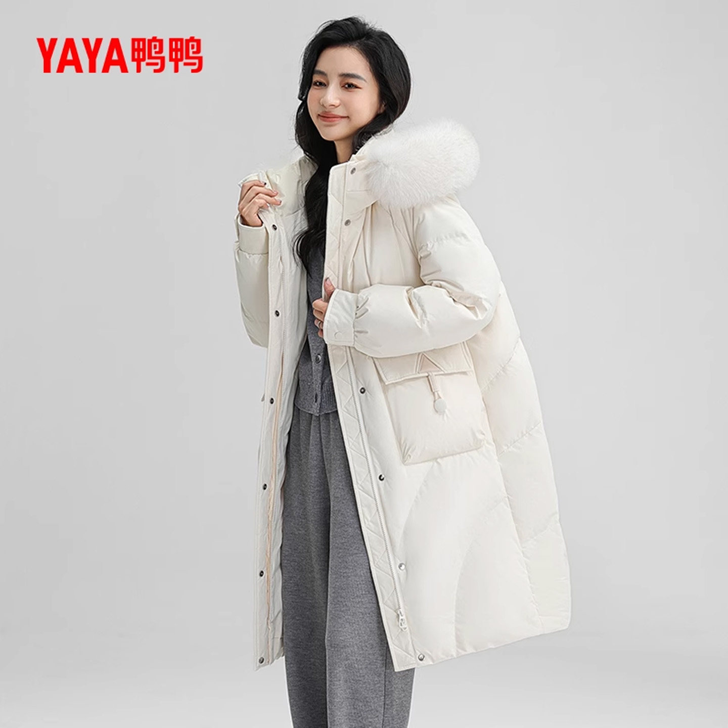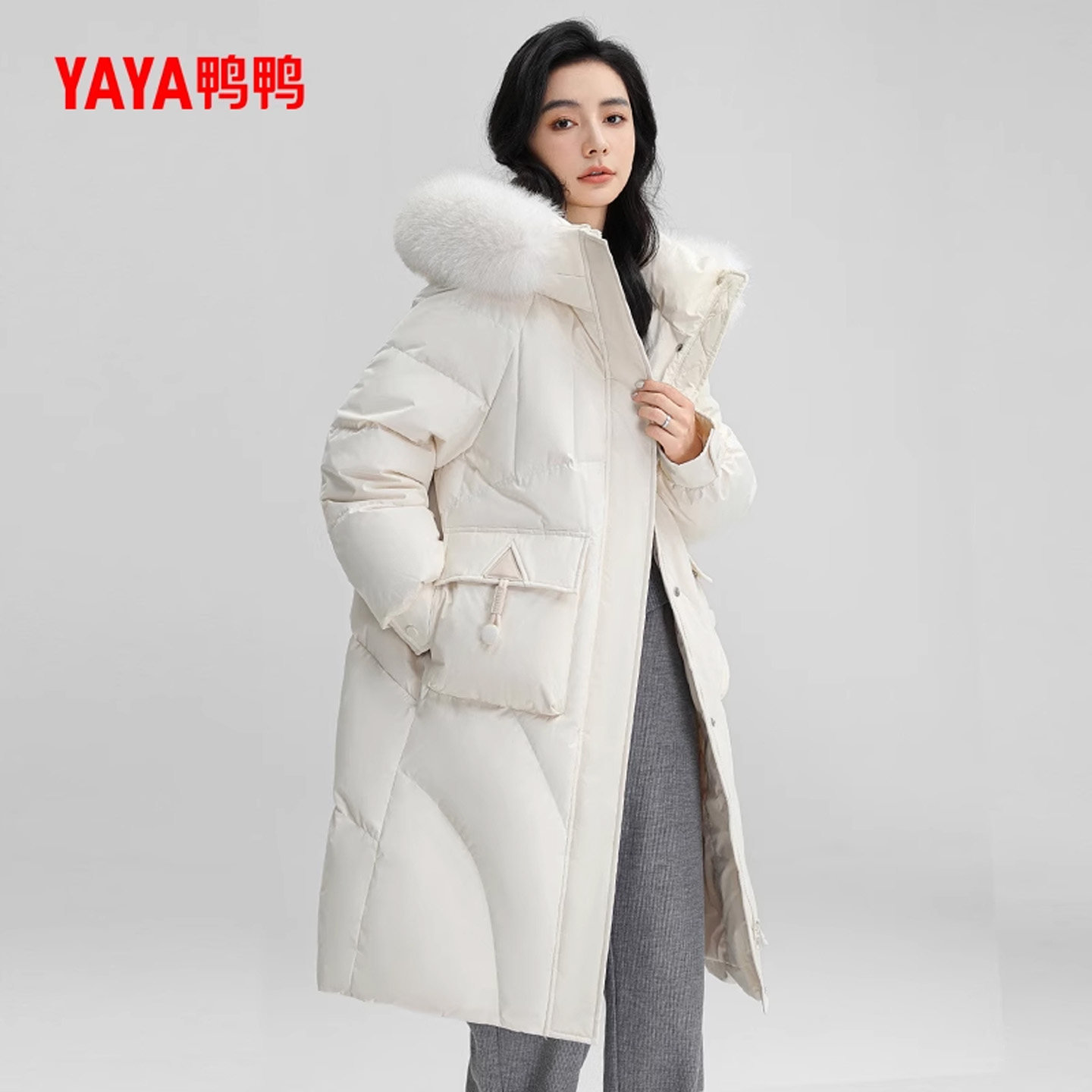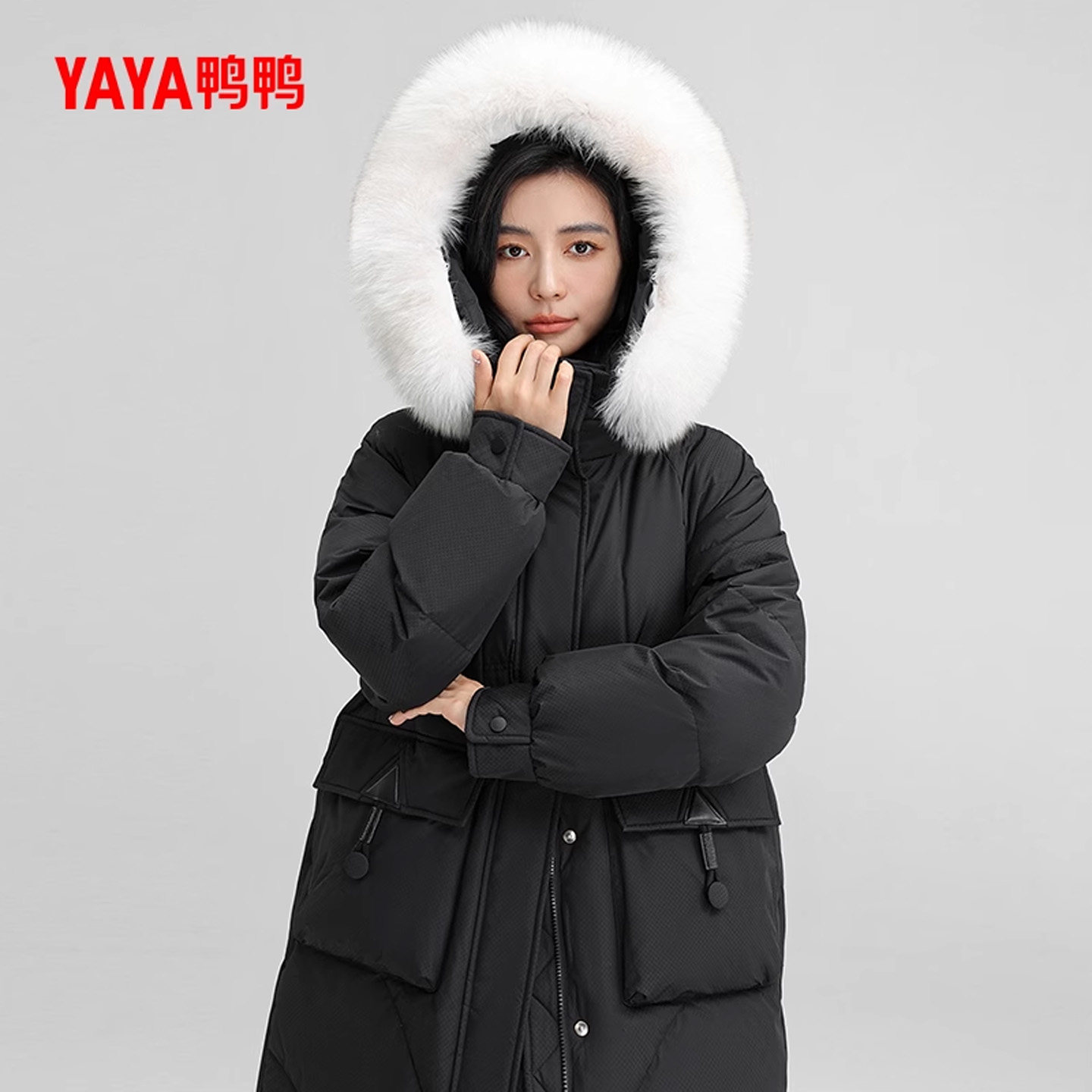 鸭鸭羽绒服女装中长款2024秋冬新品过膝长款狐狸毛领加厚保暖外套