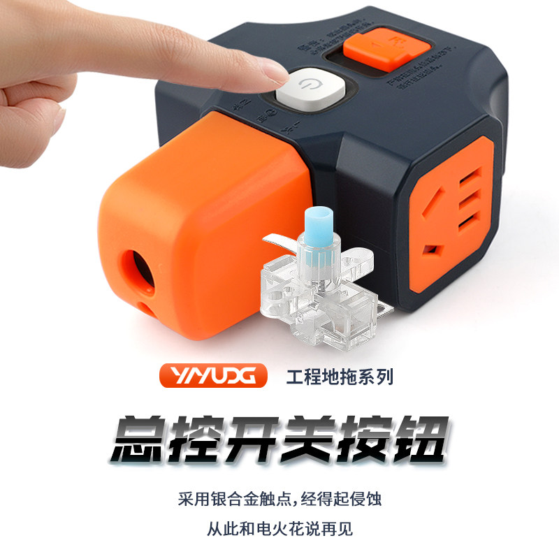 大功率插座延长线防摔地拖插排不带线工地拖接线板带锁排插带开关