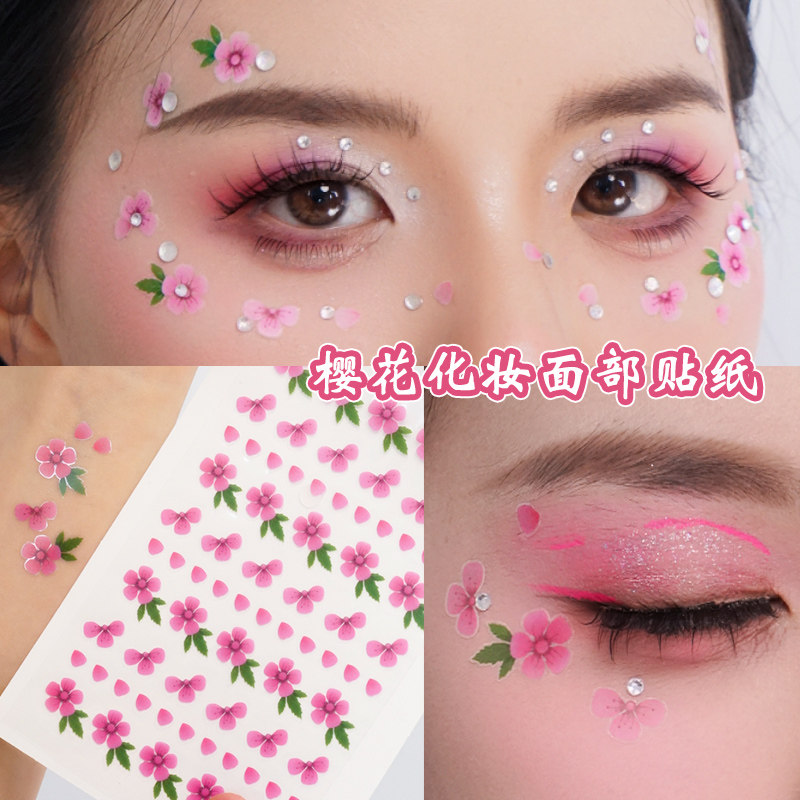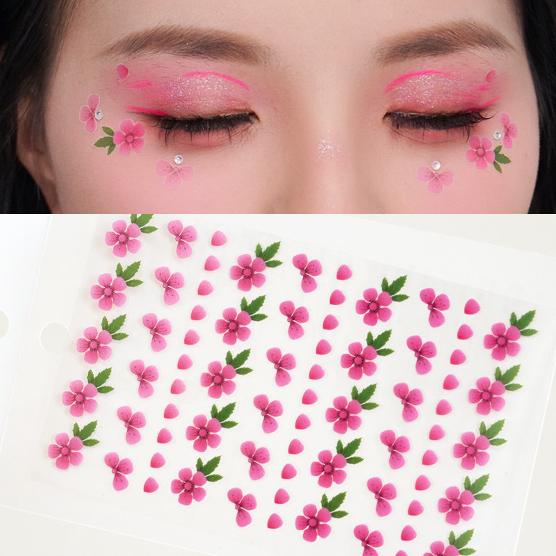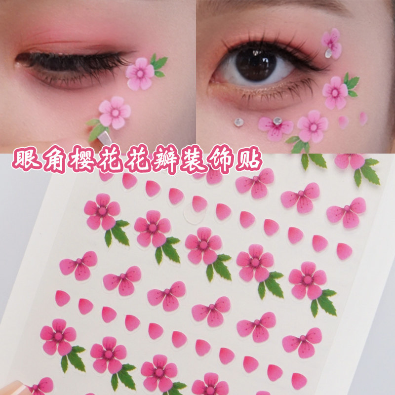 粉色桃花樱花贴纸山茶花朵花瓣儿童眼角贴女孩古风妆容脸贴舞台表演装饰脸部贴纸自带背胶粉系写真拍照装饰贴