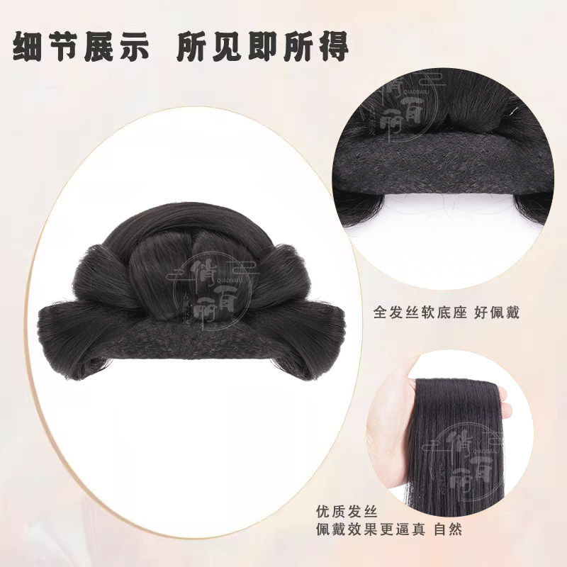 儿童汉服头饰假发包一体式全发丝古风云溪明制盘发髻古装造型发饰
