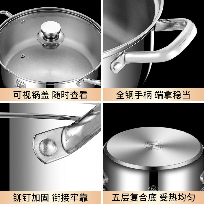 苏泊尔304不锈钢火锅家用加厚电磁炉专用汤锅火锅盆打边炉燃气a7