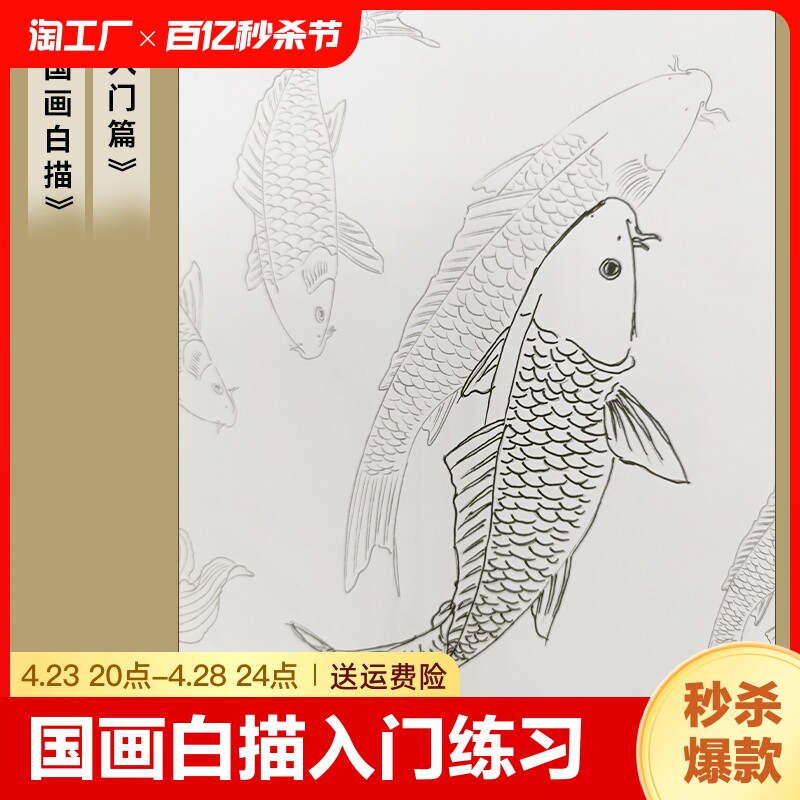 描摹本中国画白描入门儿童临摹画册涂色本控笔训练绘画国画认知卡