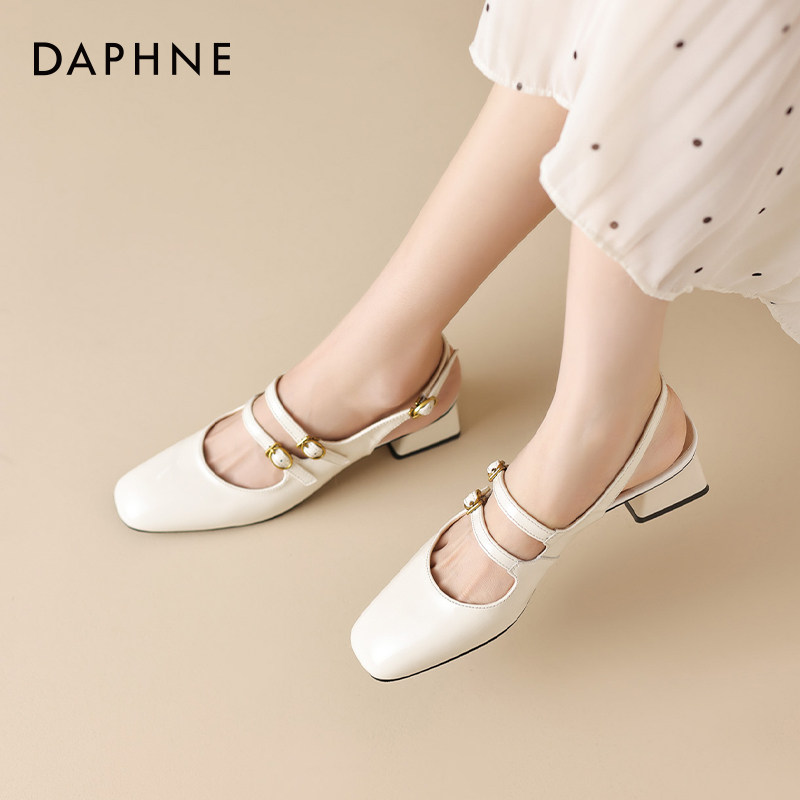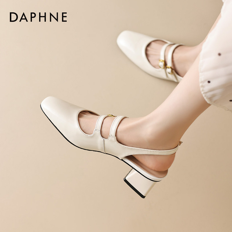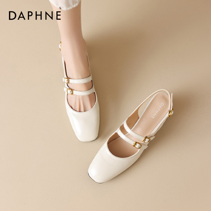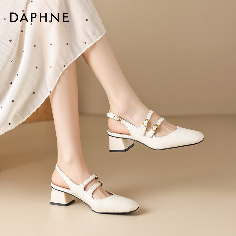 达芙妮包头凉鞋女款2026新款法式复古红色玛丽珍女鞋粗跟单鞋婚鞋