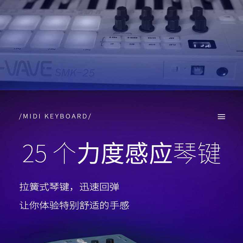 M-VAVE新款25键MIDI键盘 编曲控制器电子音乐打击垫 专业电脑迷笛