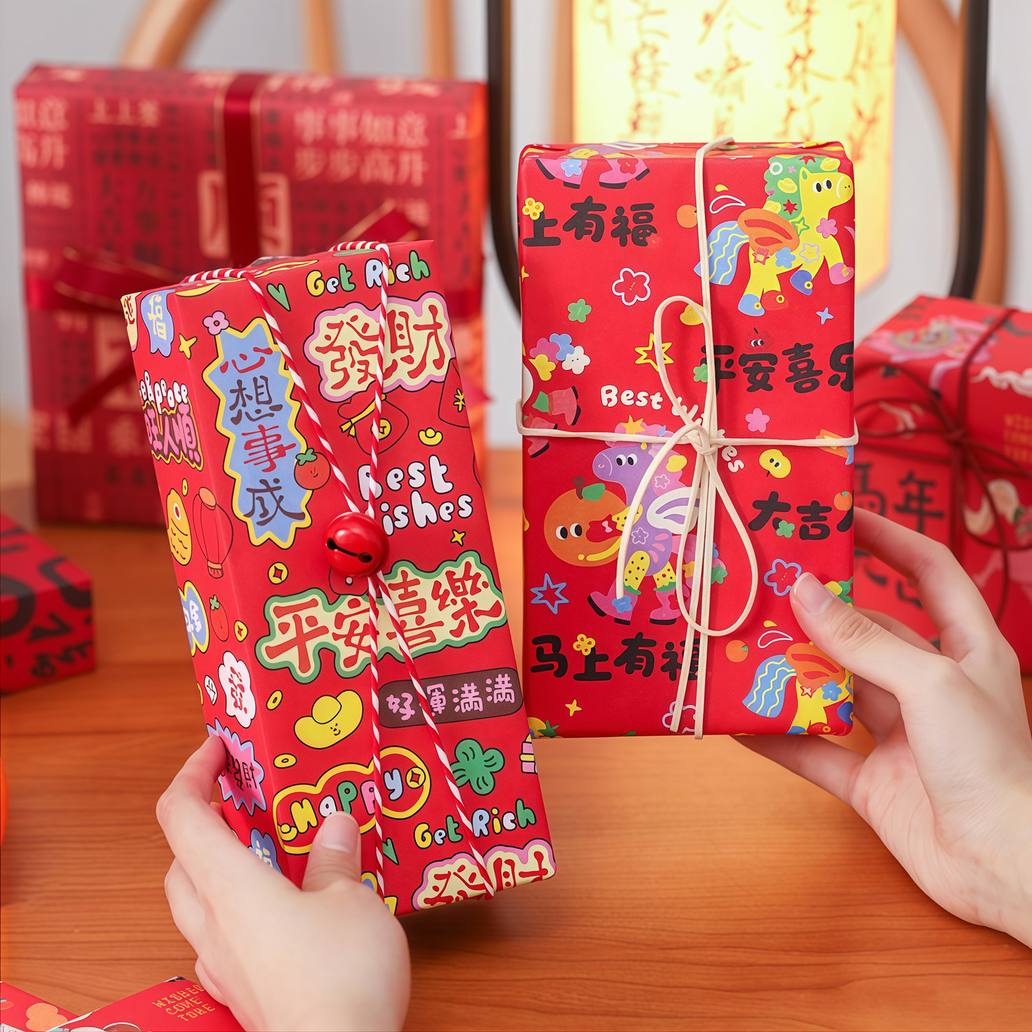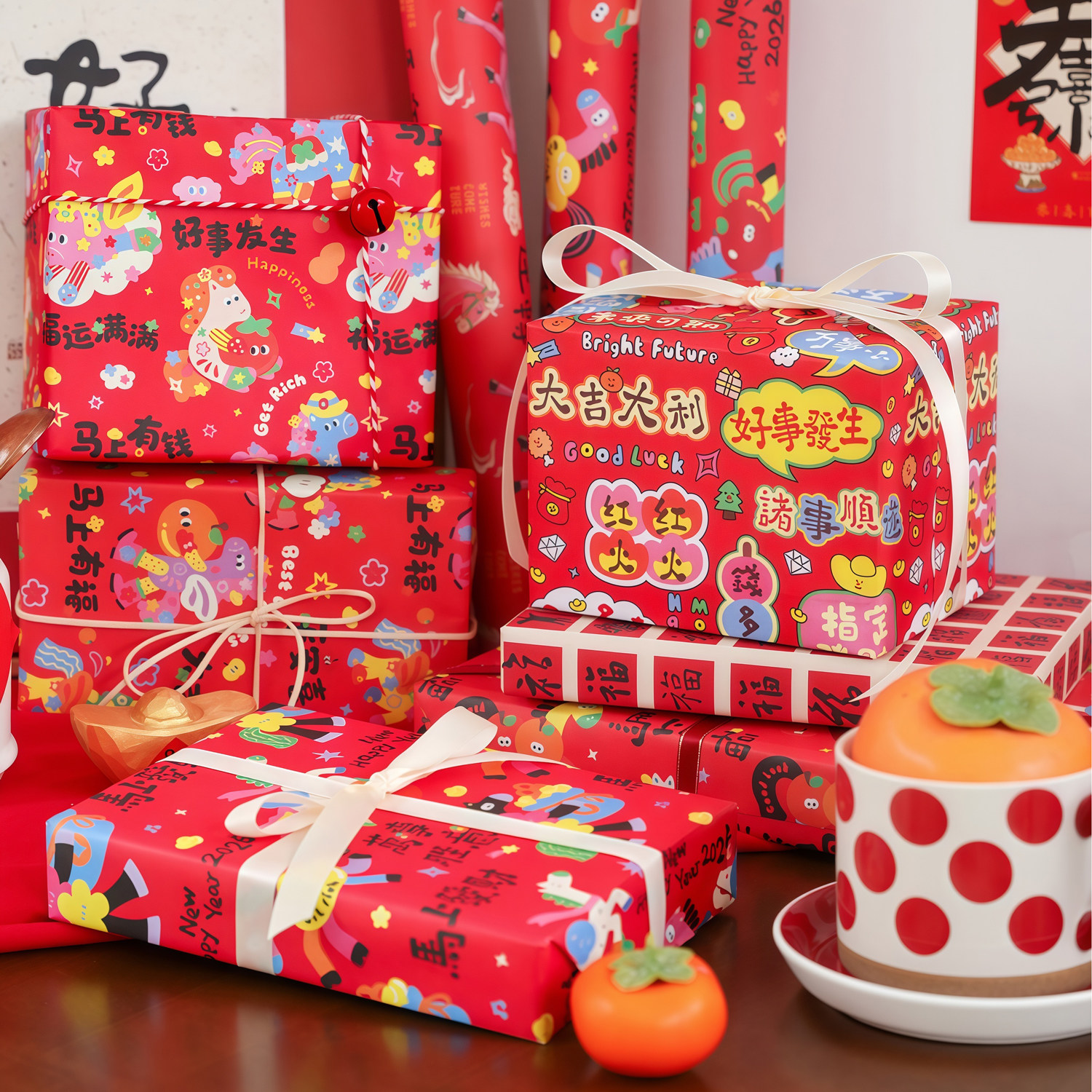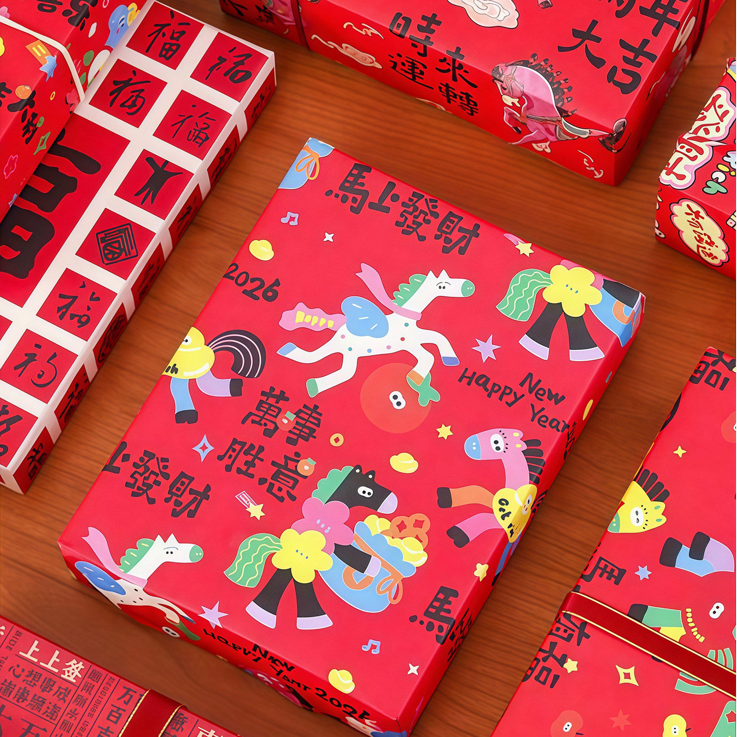 2026马年大吉喜庆红色新年礼物包装纸大尺寸马年春节结婚本命年生日伴手礼盒礼品纸高级感花束打包纸装饰彩纸