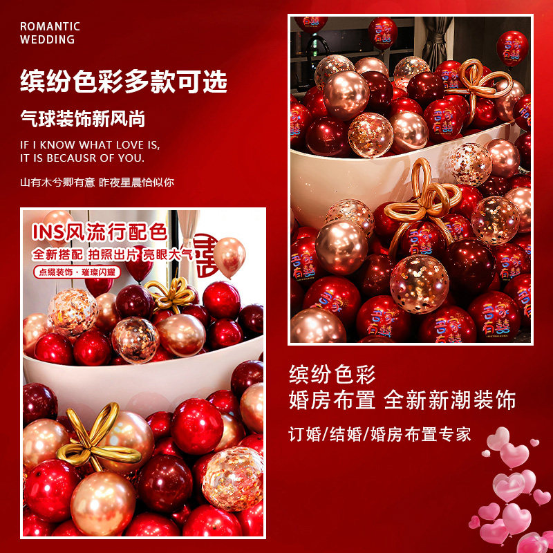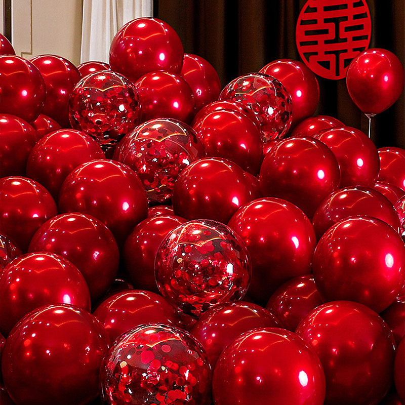 结婚气球布置婚房装饰红色婚礼场景婚庆用品新潮流行配色高级感