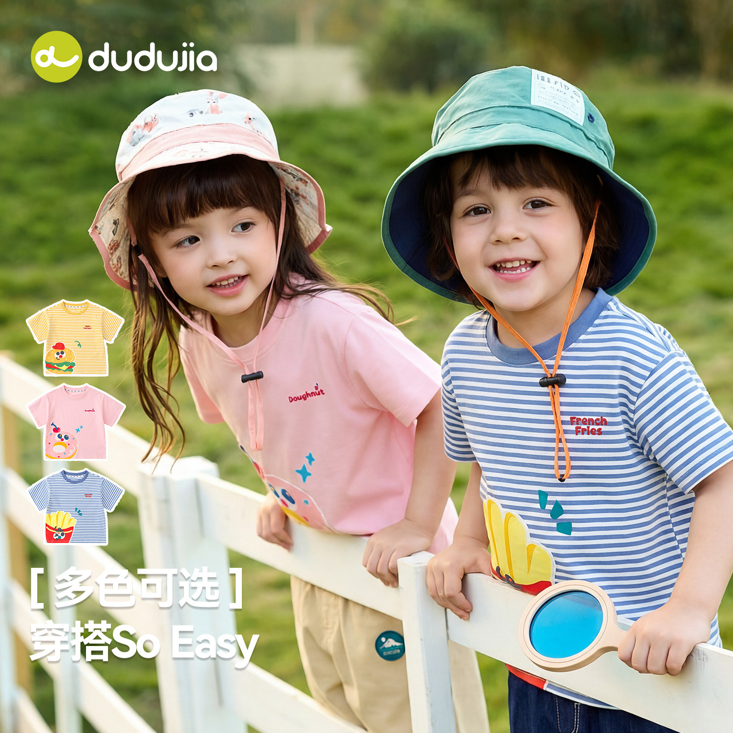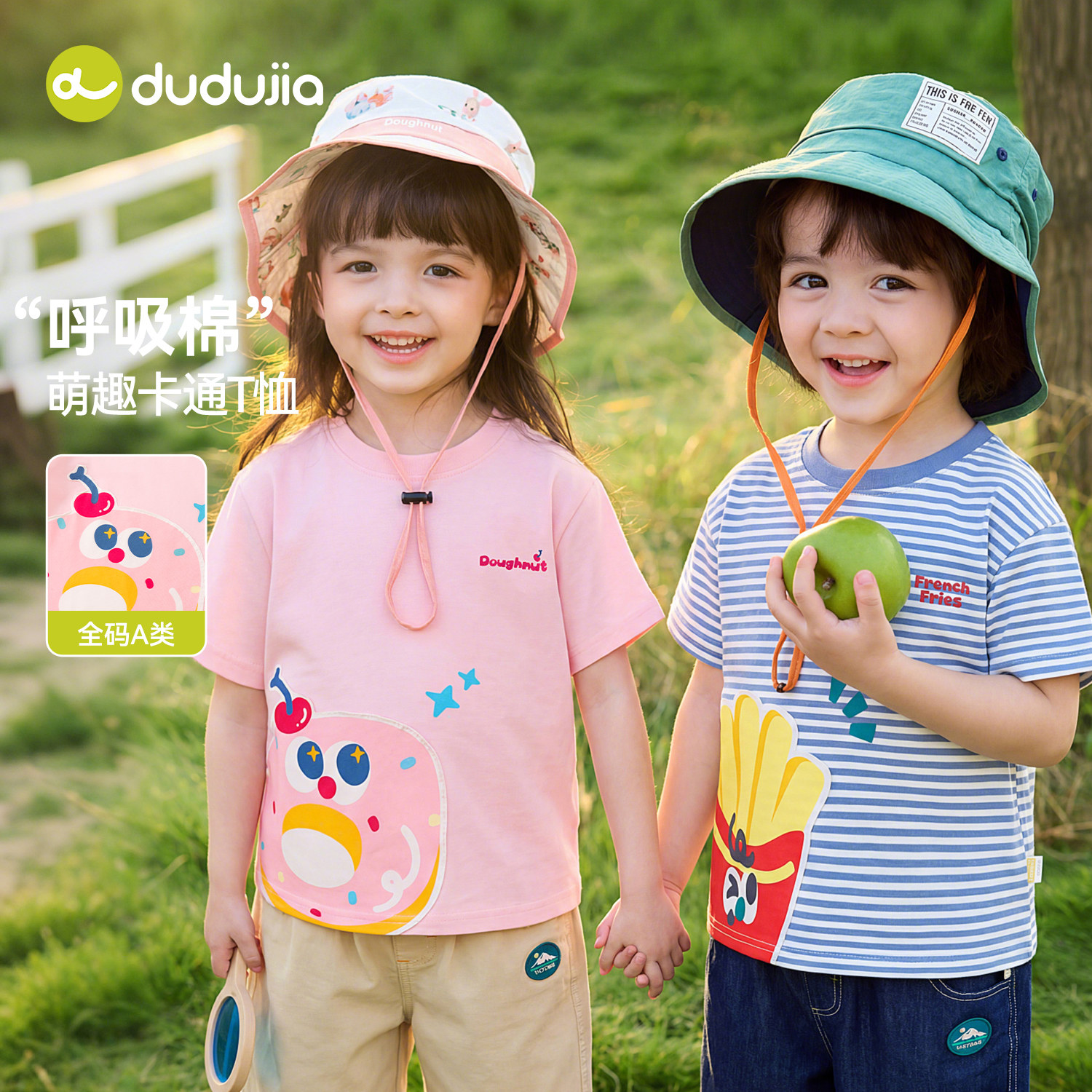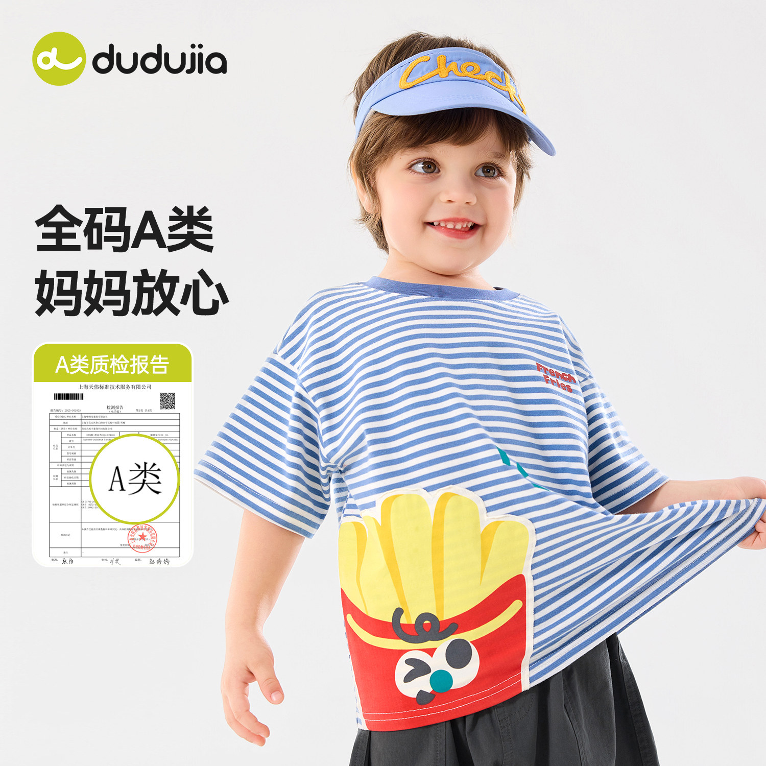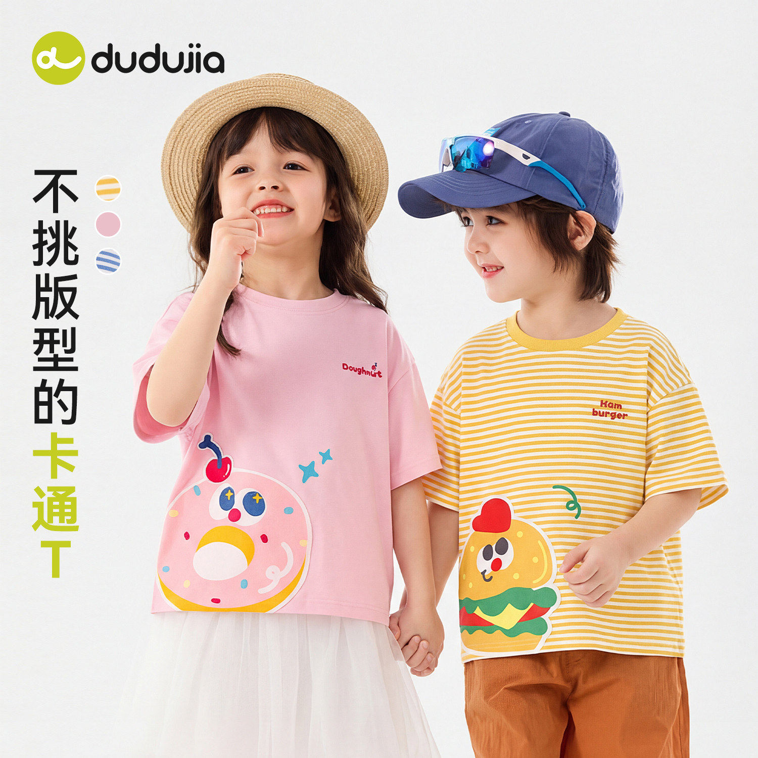 嘟嘟家儿童T恤男童短袖夏季新款女童条纹上衣休闲卡通宝宝夏装潮