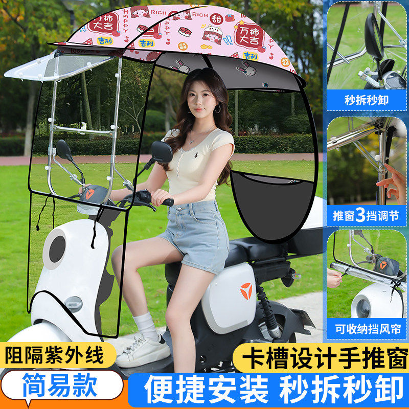 新款快拆电动车遮雨棚蓬电瓶车防晒防雨挡风罩踏板摩托车遮阳雨伞