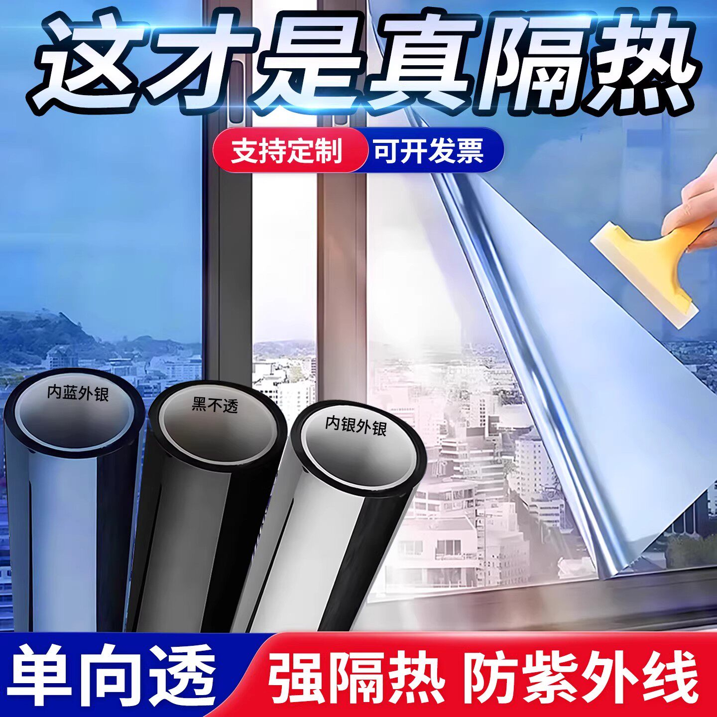 单向透视膜窗户防窥膜外面看不到里面单透玻璃膜防晒防紫外线贴纸