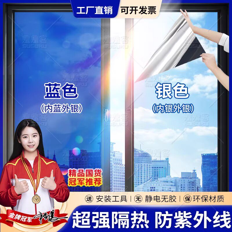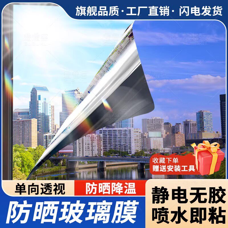 整卷窗户玻璃贴膜防晒隔热膜阳光房阳台单向透视遮光遮阳反光贴纸