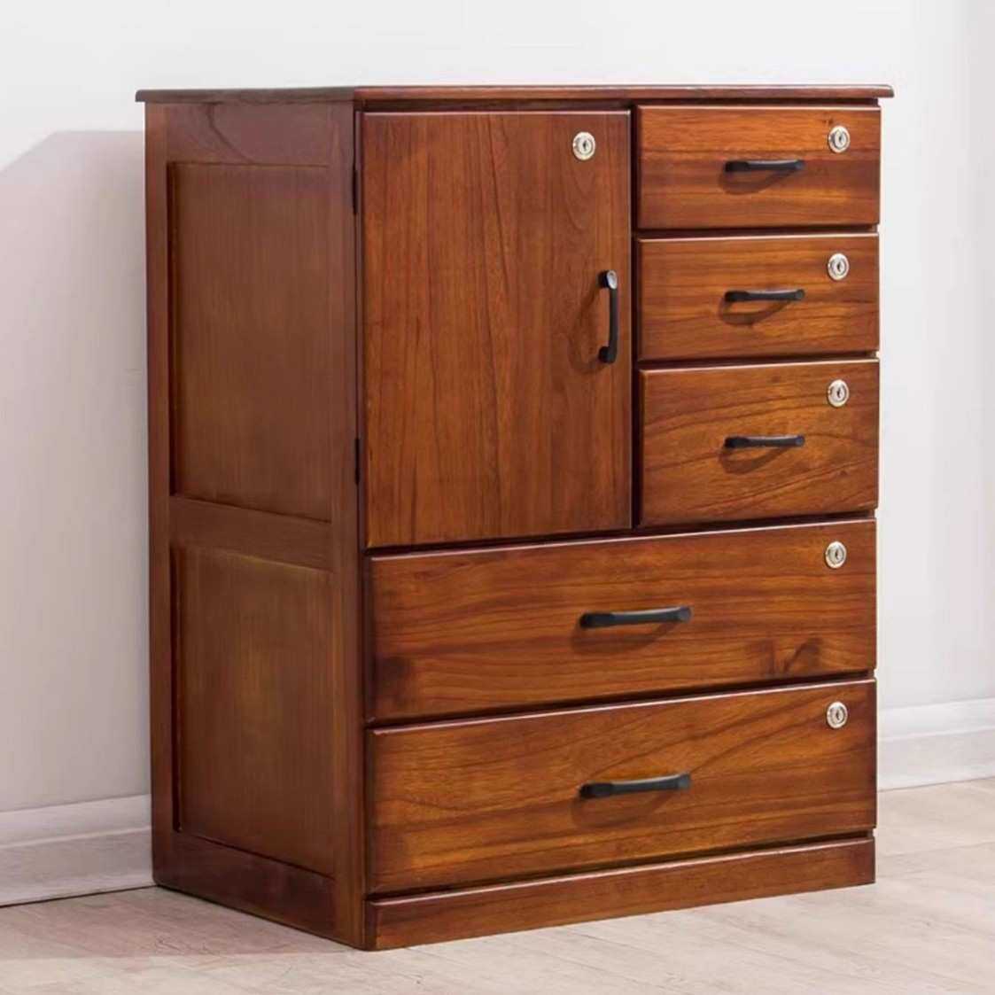 五斗柜实木卧室抽屉柜客厅小柜子五斗橱带锁文件柜收纳柜子储物柜