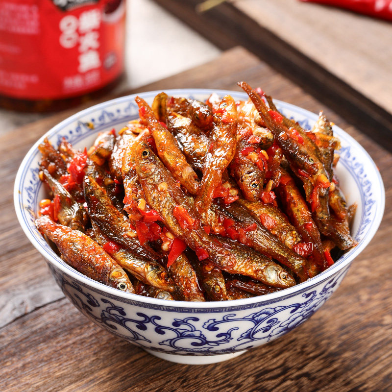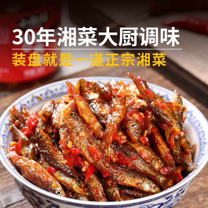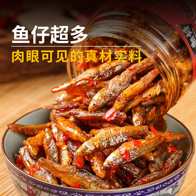 湖南特产柴火鱼干香辣鱼仔辣椒酱下饭菜瓶装熟食小吃零食下酒小鱼