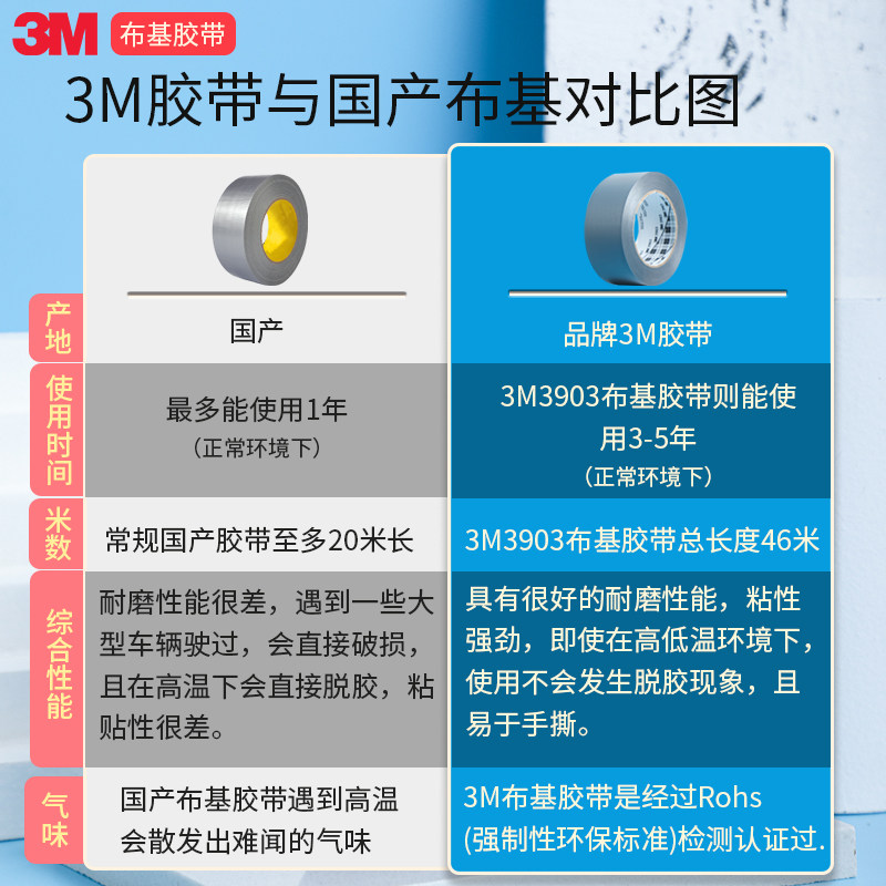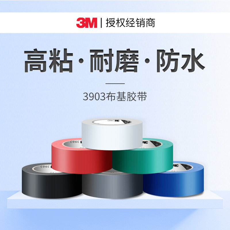 3m布基胶带强力高粘度胶布纯色防水密封3903单面胶无痕白黑银红色黄色地毯专用封窗胶带防风胶带大力警示胶带