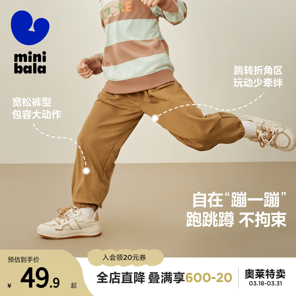 【mini亲子】迷你巴拉巴拉亲子装男女童裤子宽松基础运动长裤