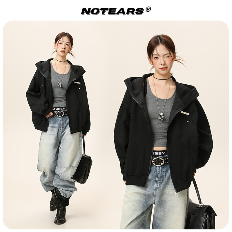 NOTEARS/没有眼泪 2025美式clean fit版型外套情侣连帽上衣2590