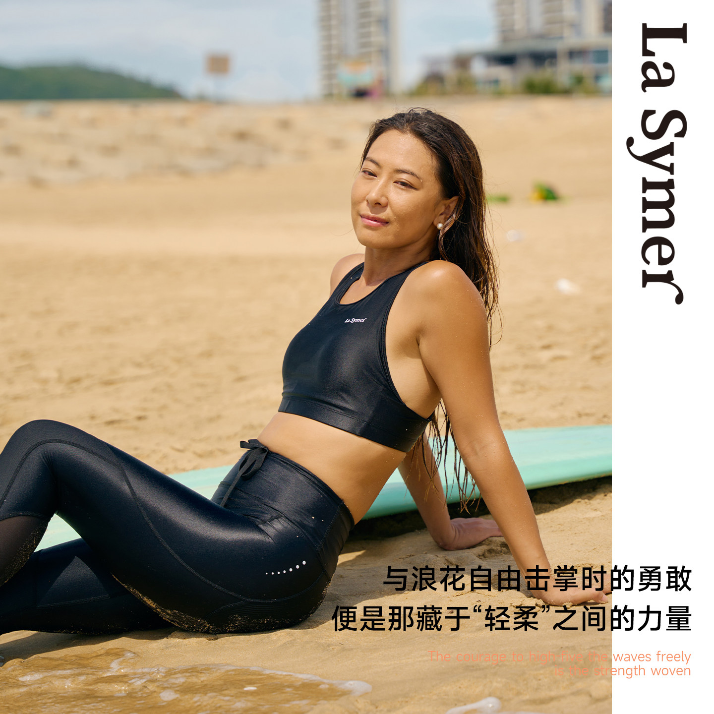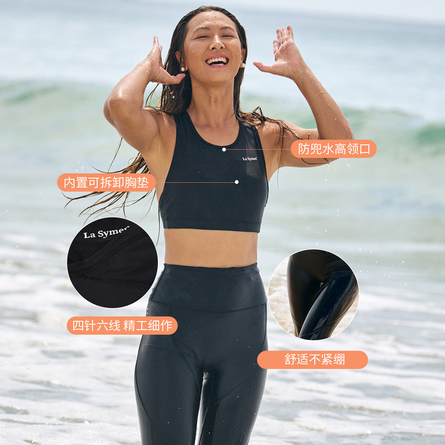 La Symer冲浪背心分体泳衣女圆领潜水高腰长裤泳衣高级感度假套装