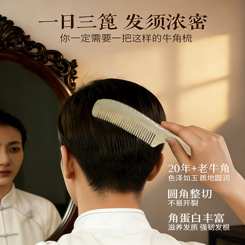 天然牛角梳男士专用按摩头皮经络防静电便携小儿童女孩不伤发尖尾